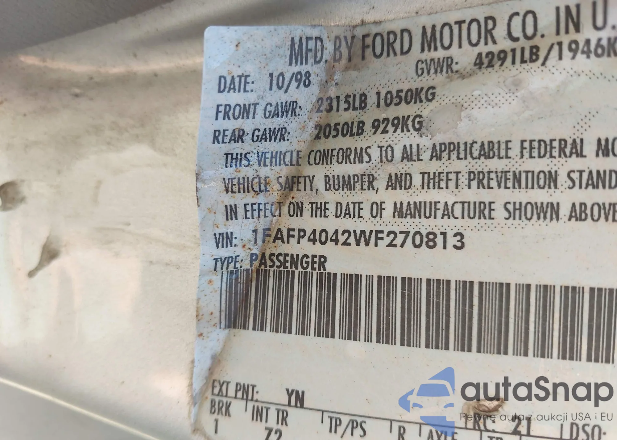 LOT: 43677105 VIN: 1ZVBP8ENXA5122261