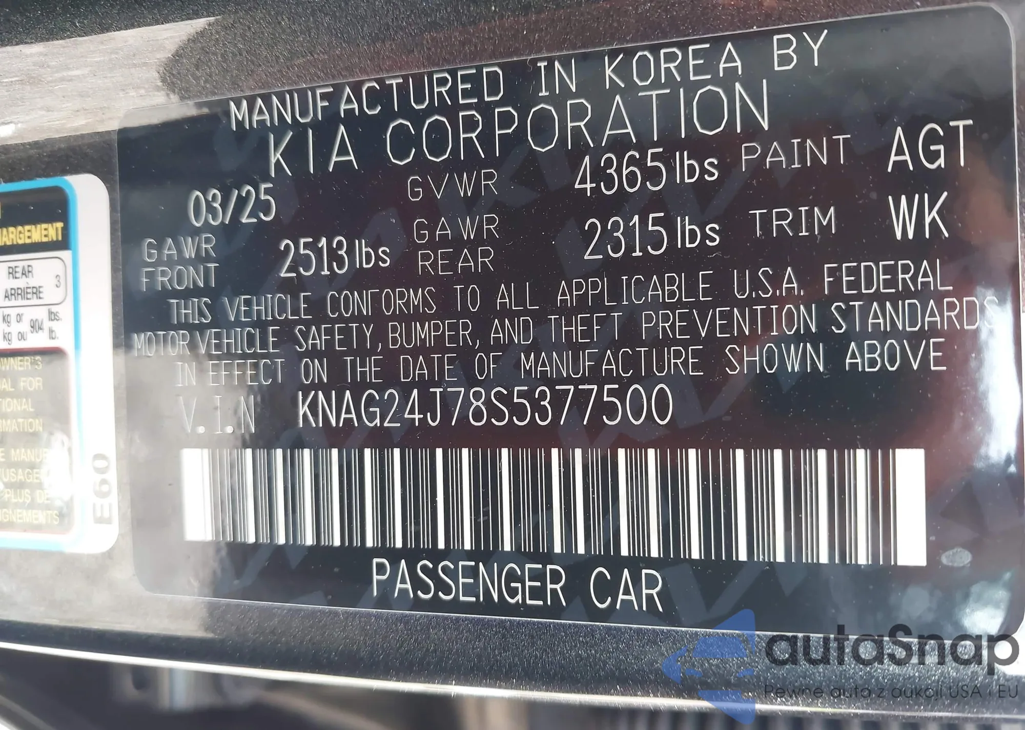 • VIN KNAG24J78S5377500