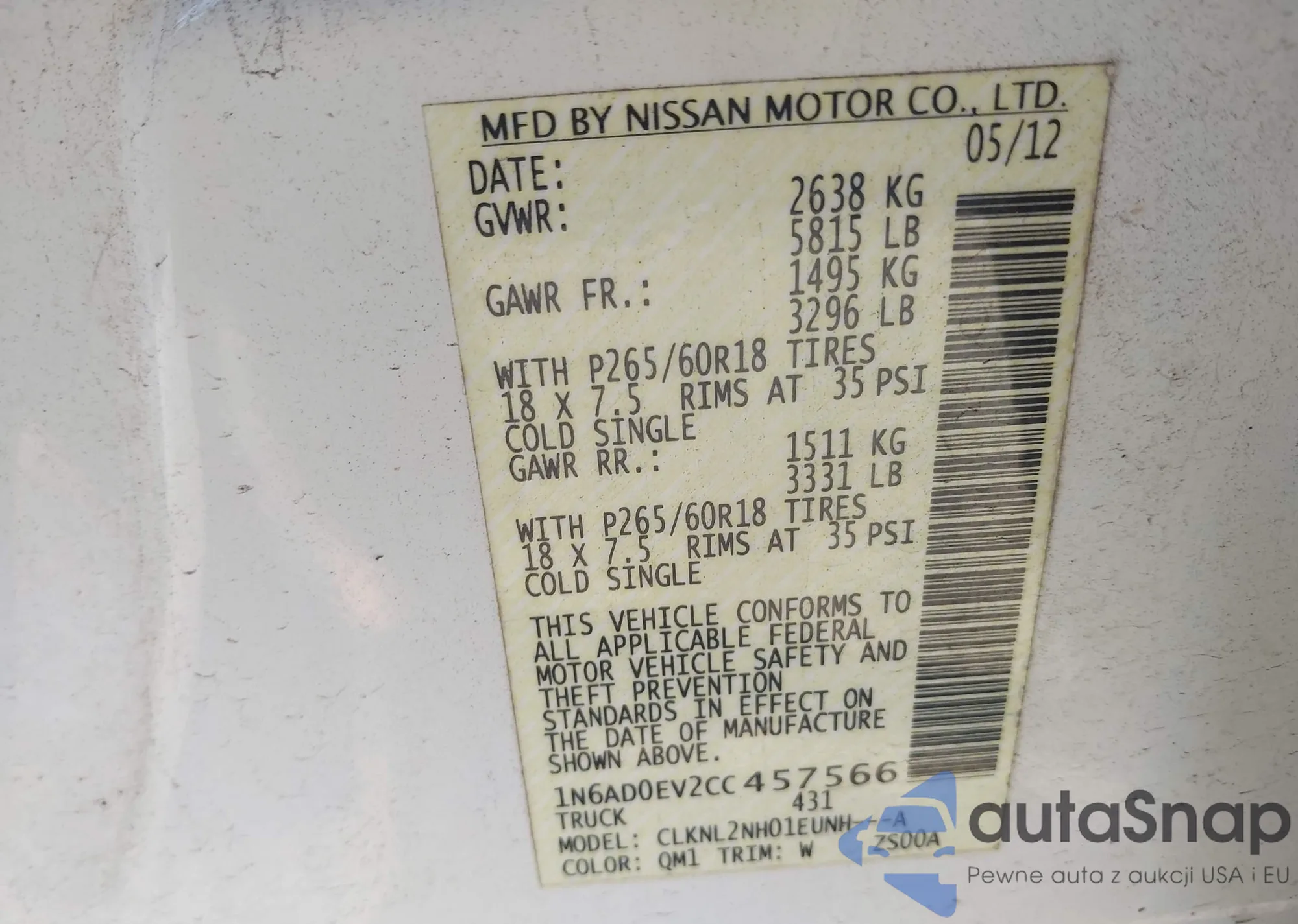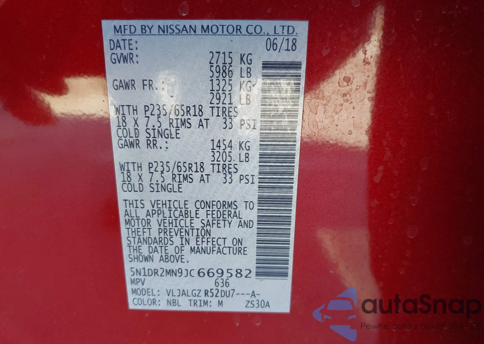 LOT: 43481022 VIN: 5N1DR2MN9JC669582