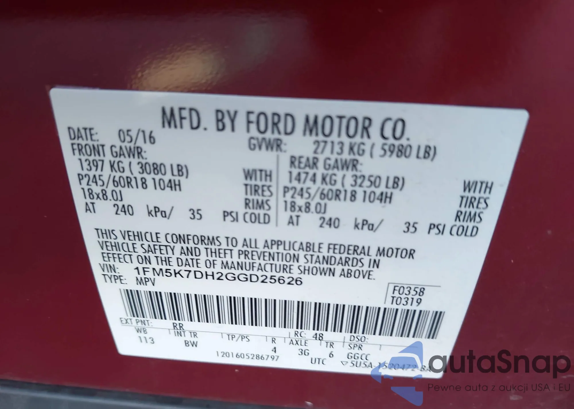 • VIN 2T3E6RFV2MW016147