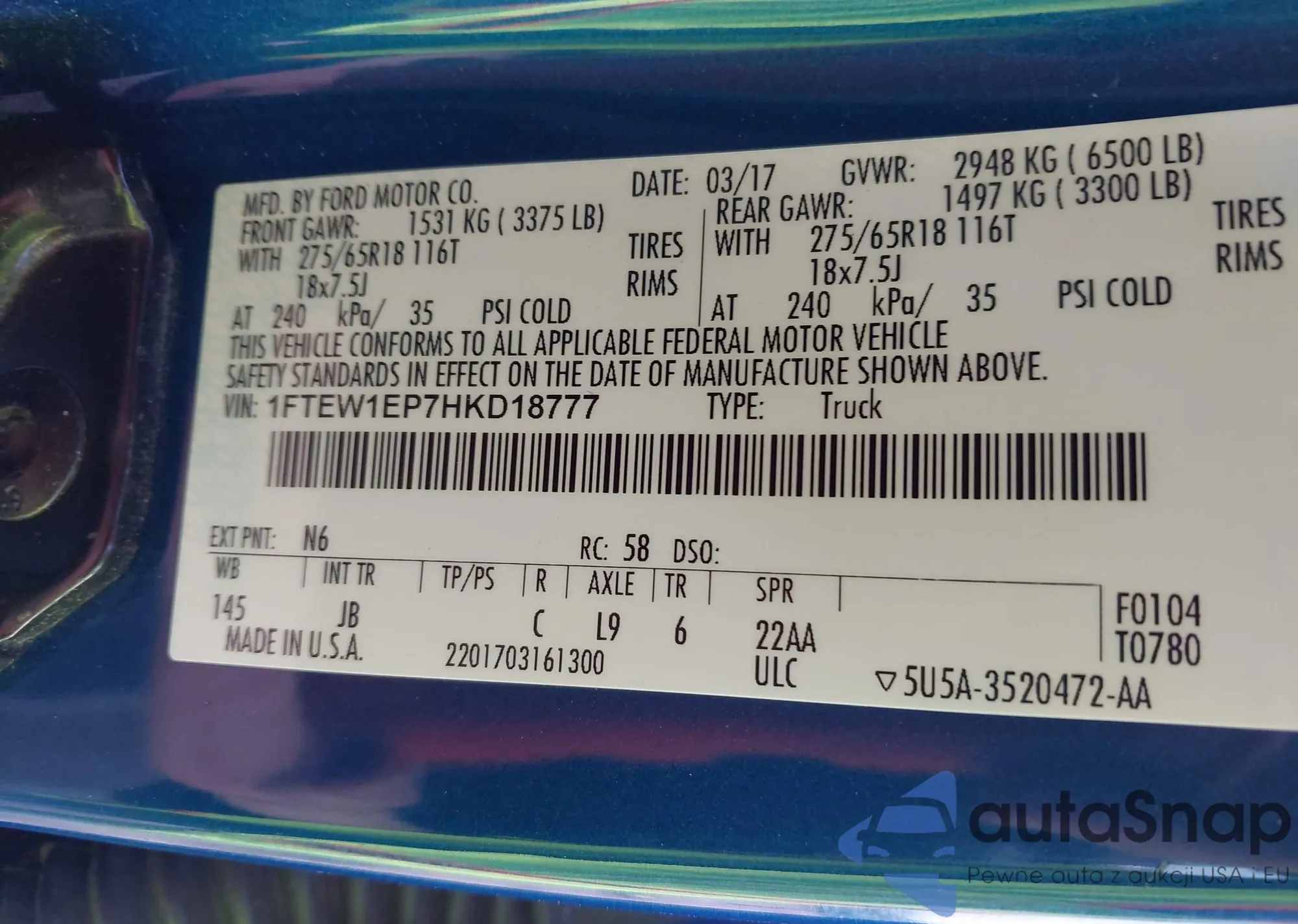 • VIN 1FTEW1EP7HKD18777