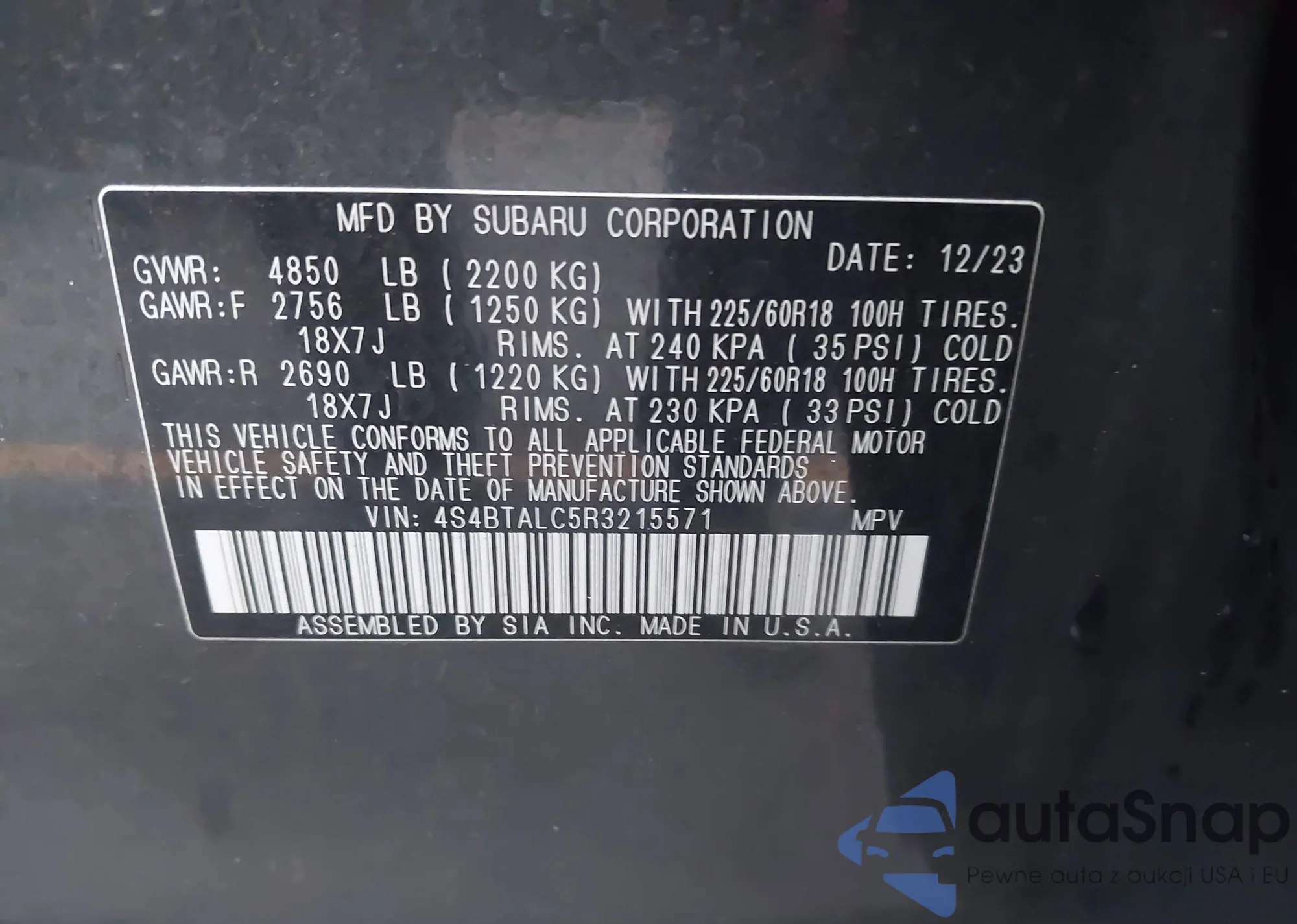 • VIN 4S4BTALC5R3215571
