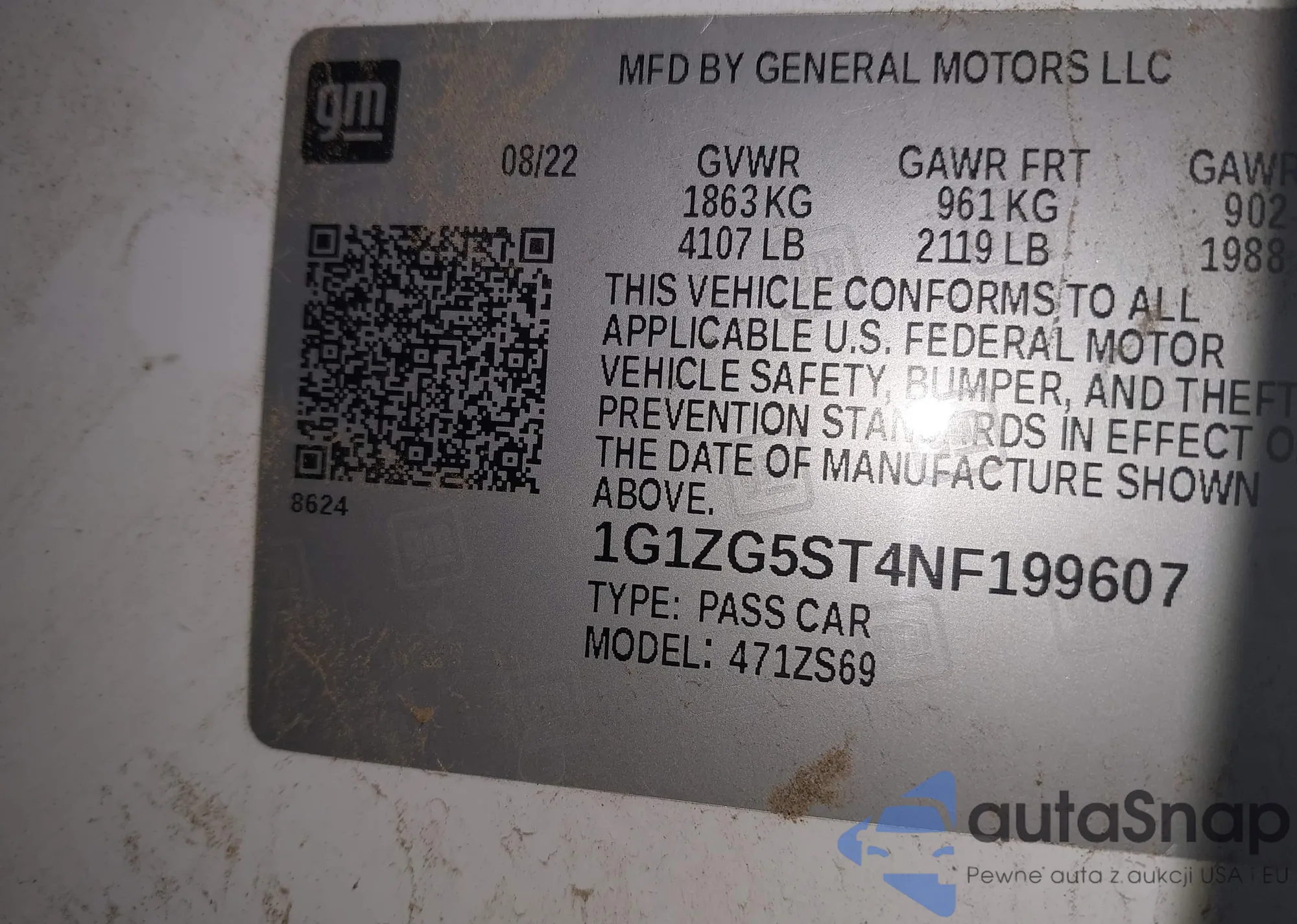 • VIN 1G1ZG5ST4NF199607