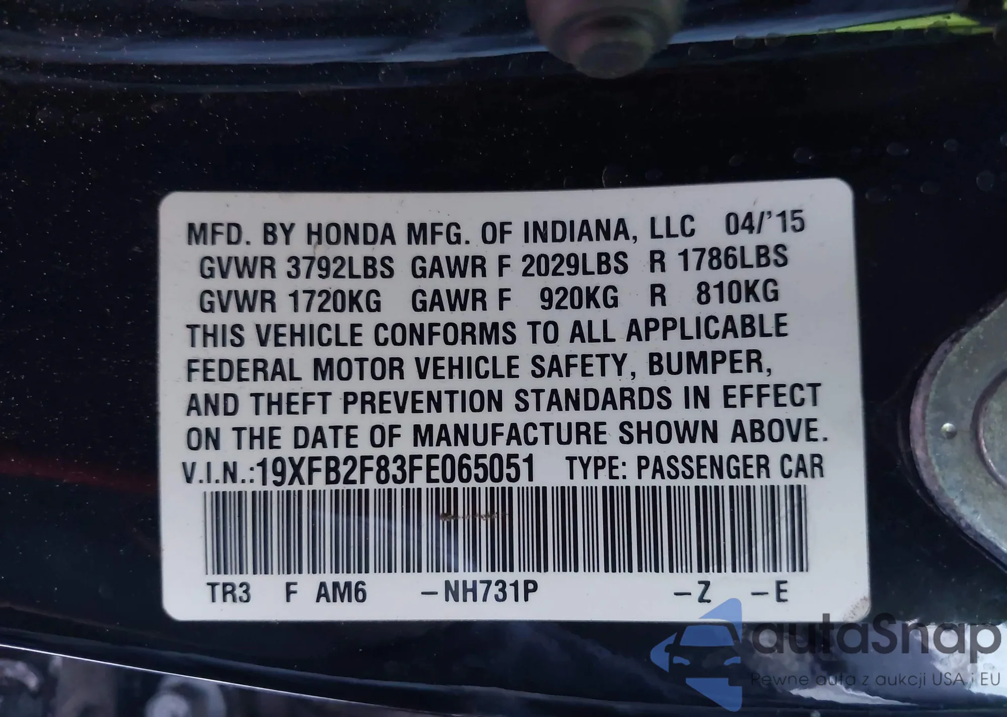 • VIN 19XFB2F83FE065051
