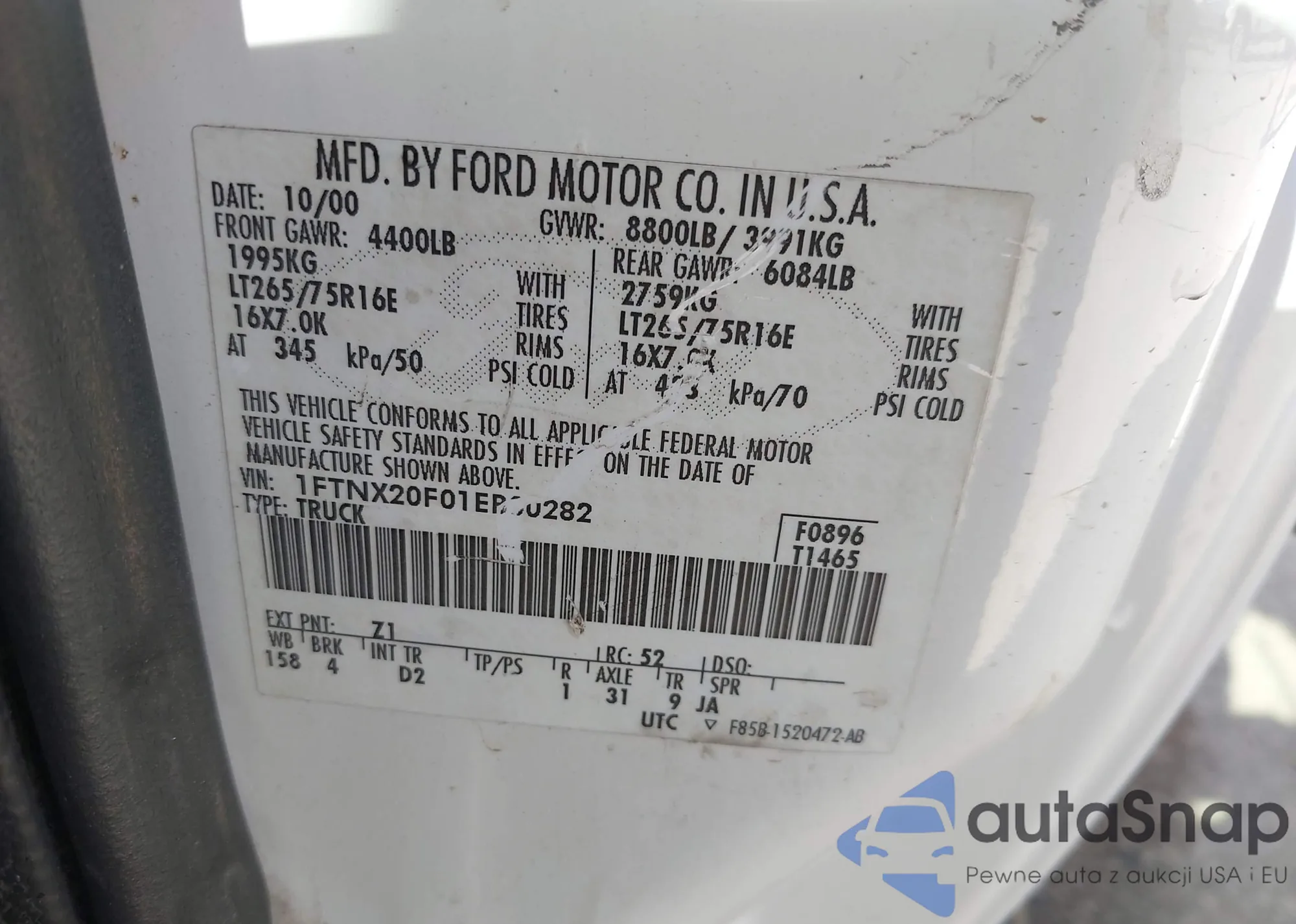 LOT: 43690472 VIN: 1FTNX20F01EB00282