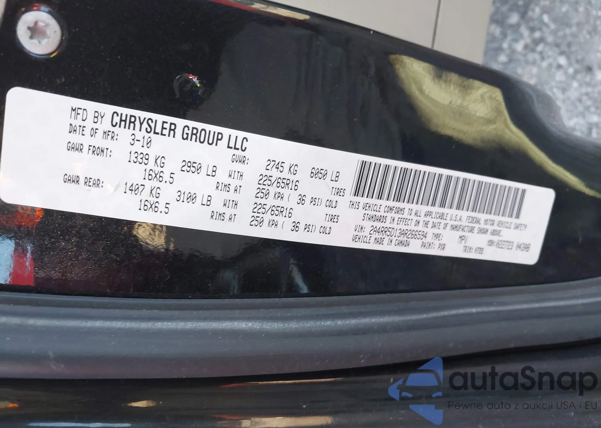 • VIN 2A4RR5D13AR266594