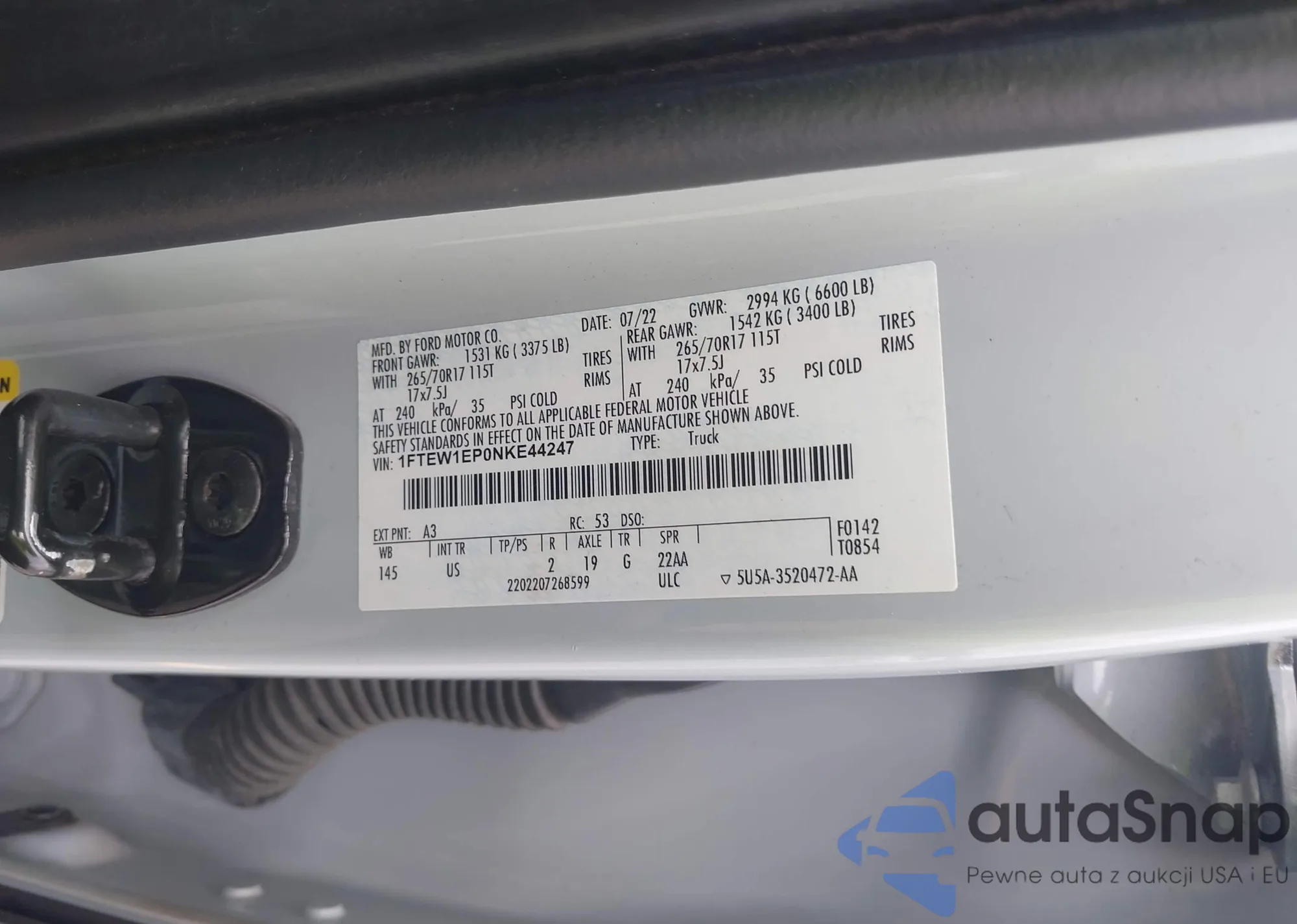 LOT: 42950814 VIN: 1FTEW1EP0NKE44247