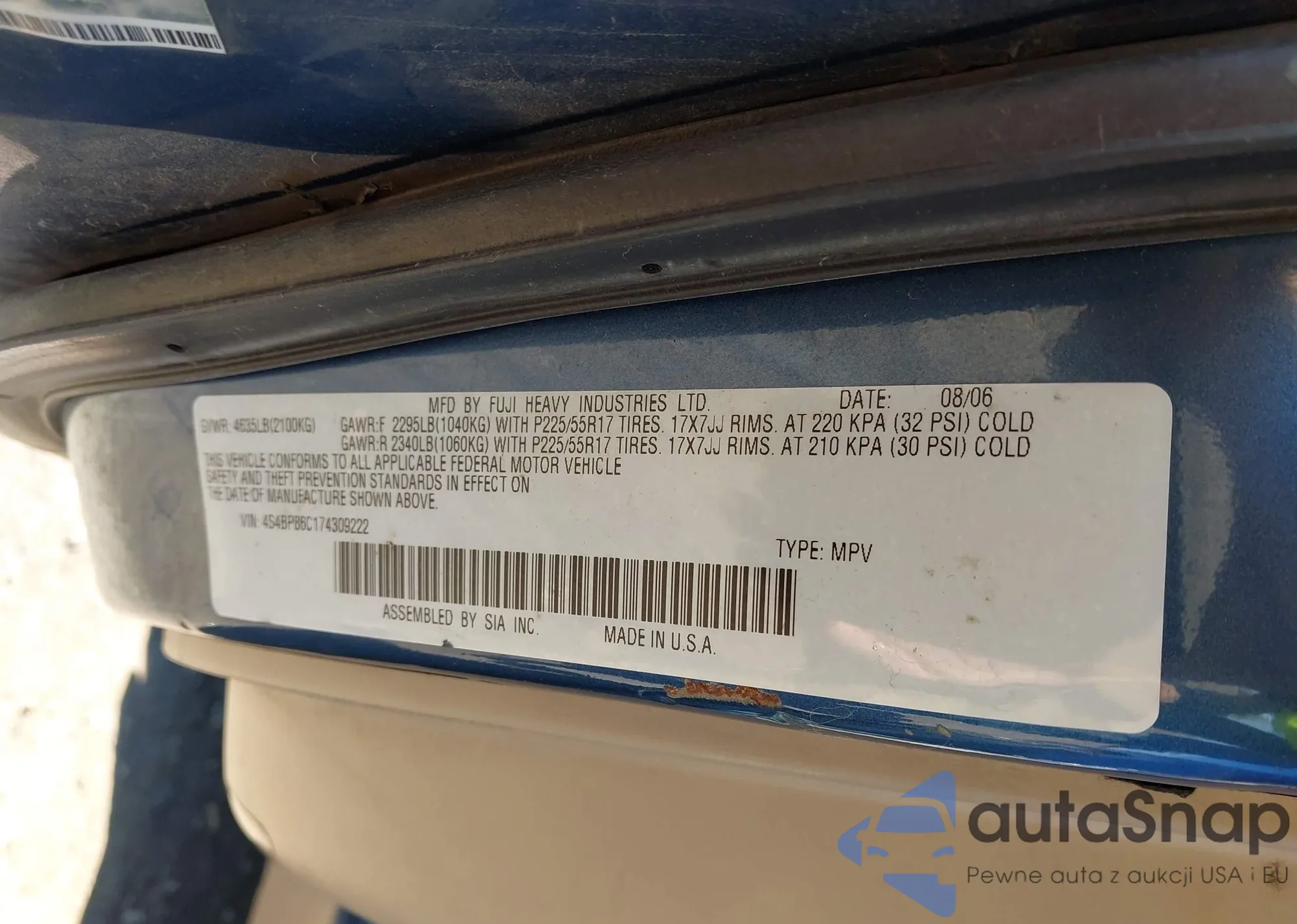 • VIN 4S4BP86C174309222