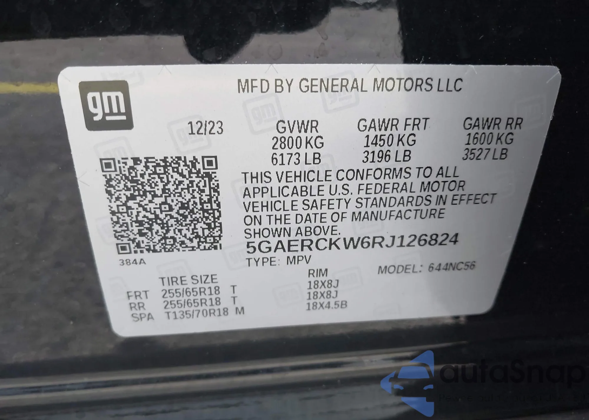 • VIN 5GAERCKW6RJ126824