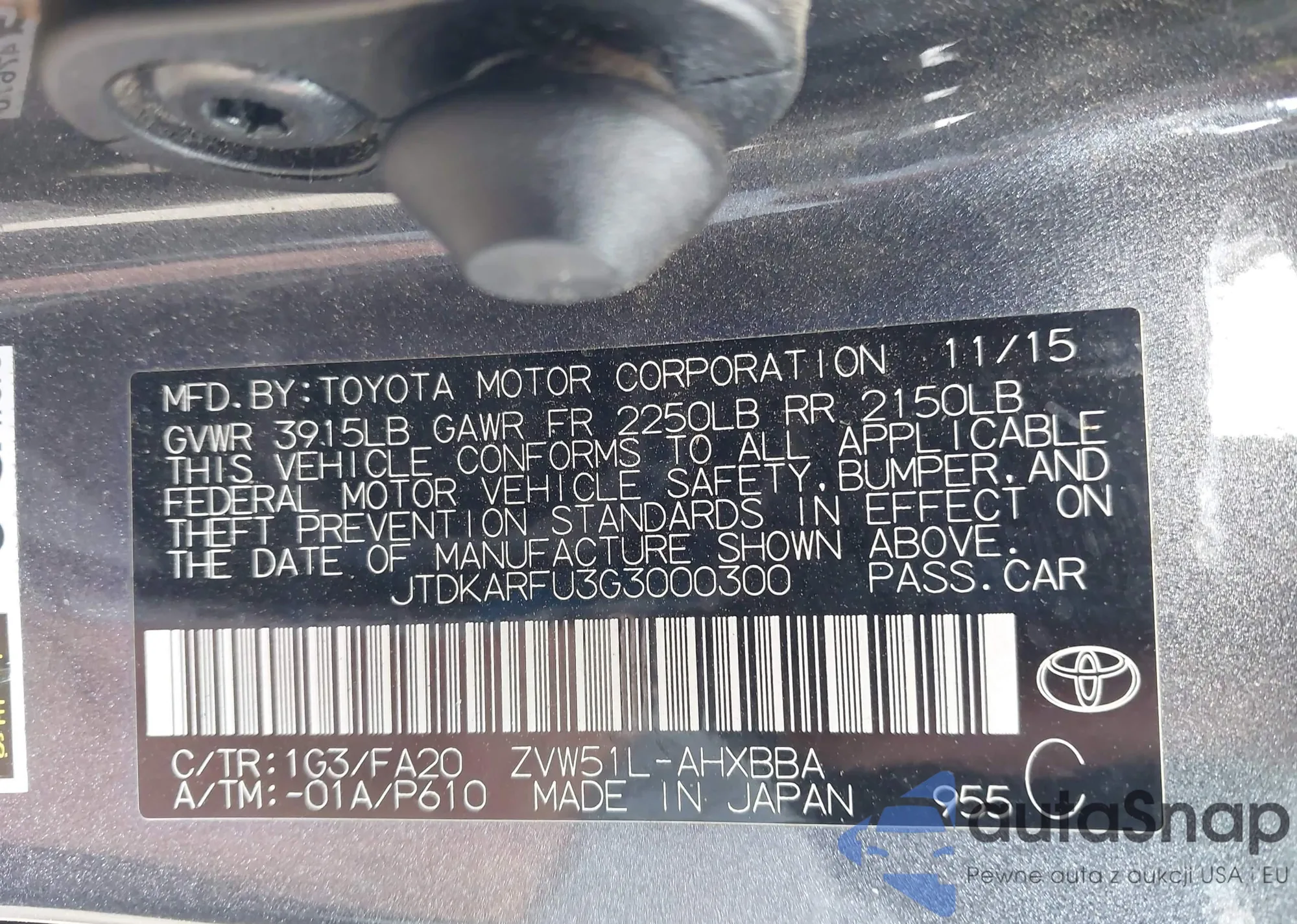 LOT: 43457672 VIN: 2T3DFREVXFW327826