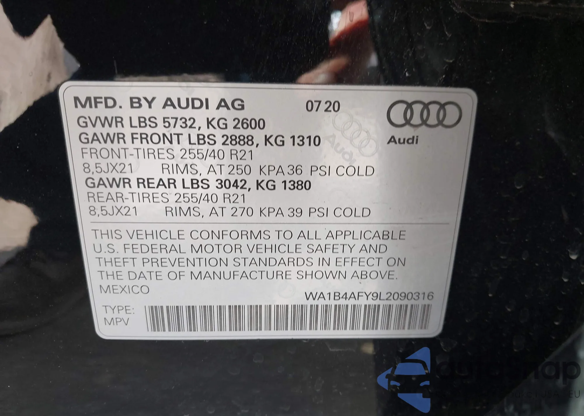• VIN WA1B4AFY9L2090316