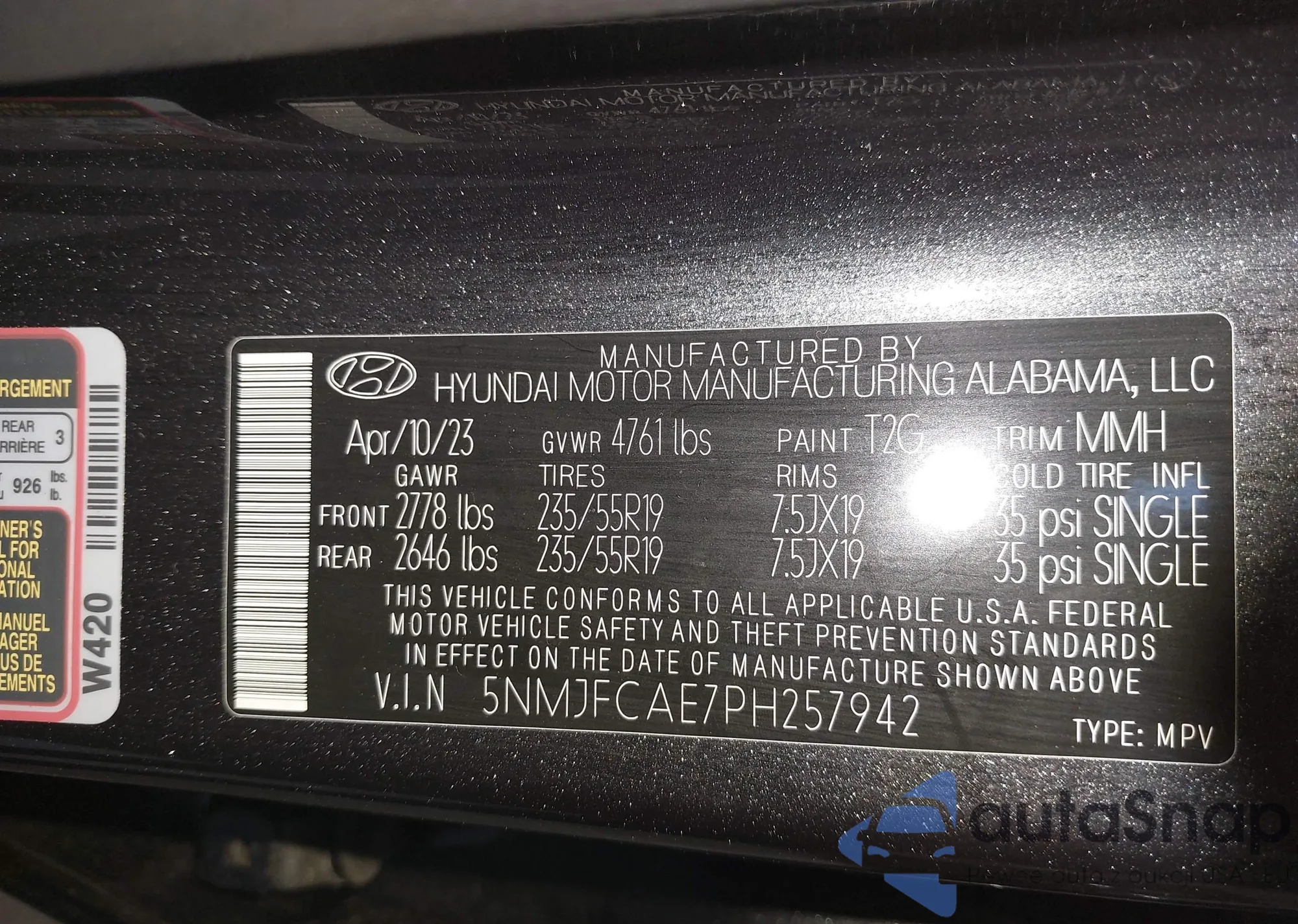 LOT: 43437745 VIN: 5NMS3DAJ6MH372172
