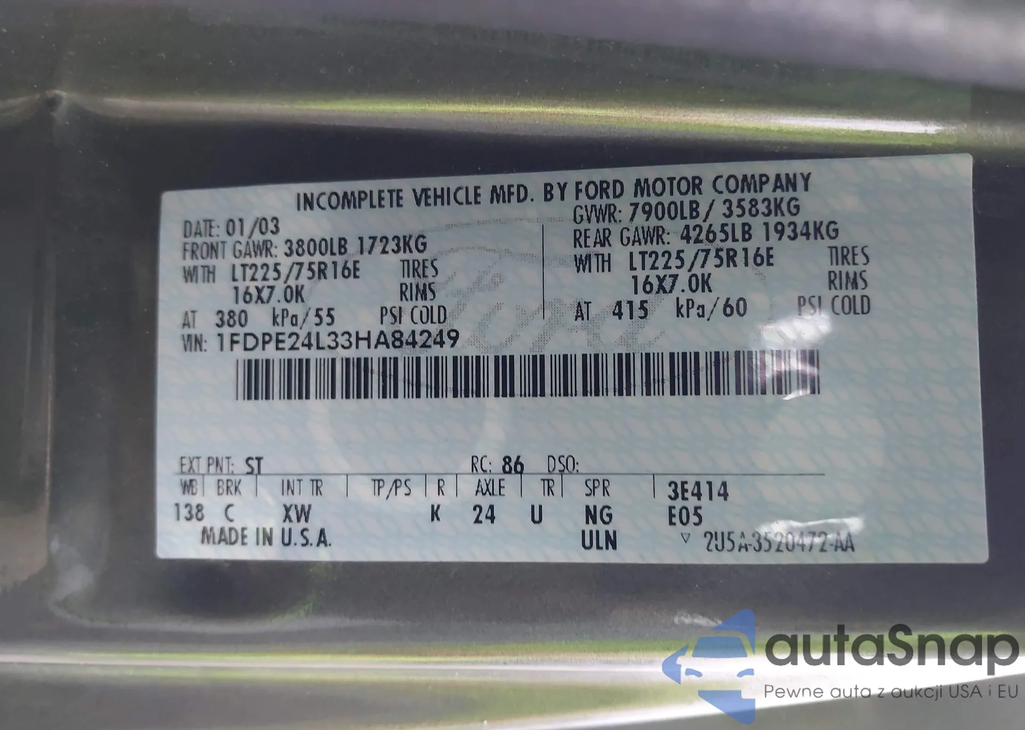 • VIN 1FDPE24L33HA84249