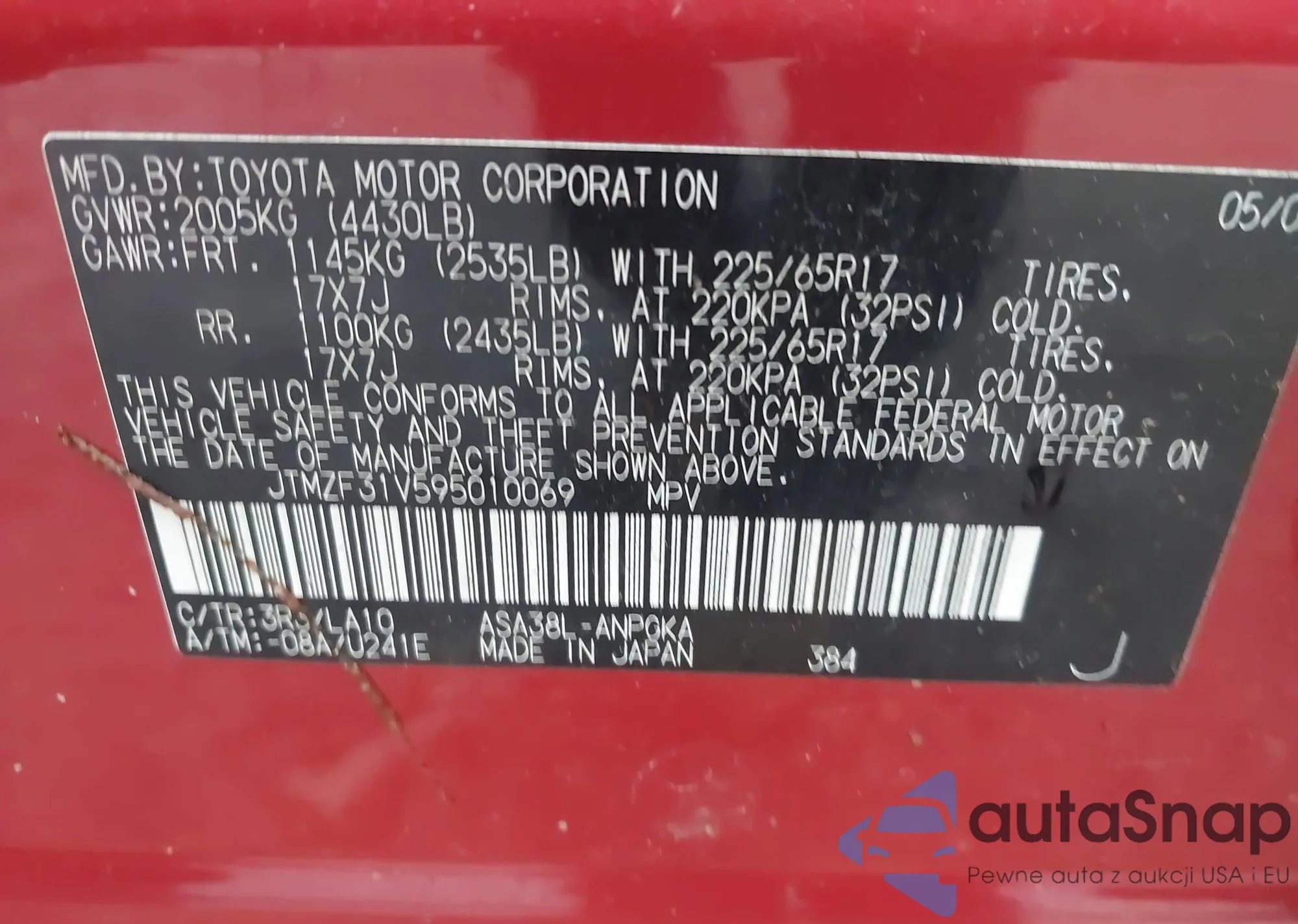 • VIN 2T3DFREVXFW327826
