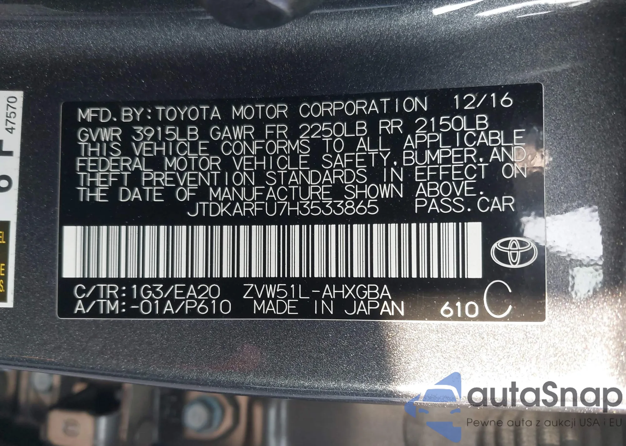 • VIN 4T1BF1FK8HU420370