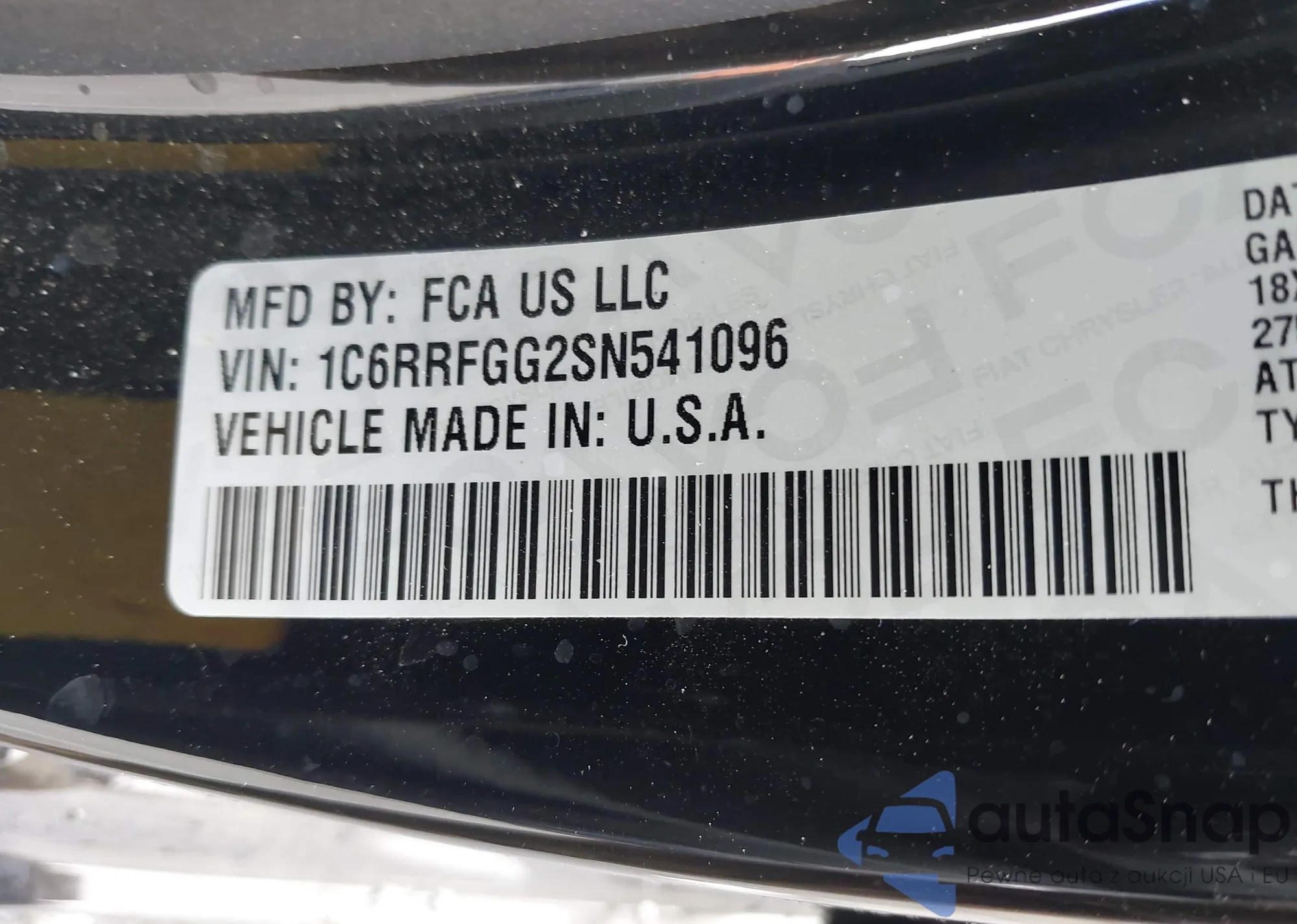 • VIN 1C6RRFGG2SN541096