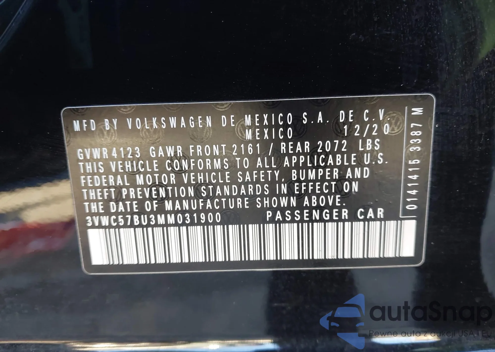 • VIN 3VWC57BU3MM031900
