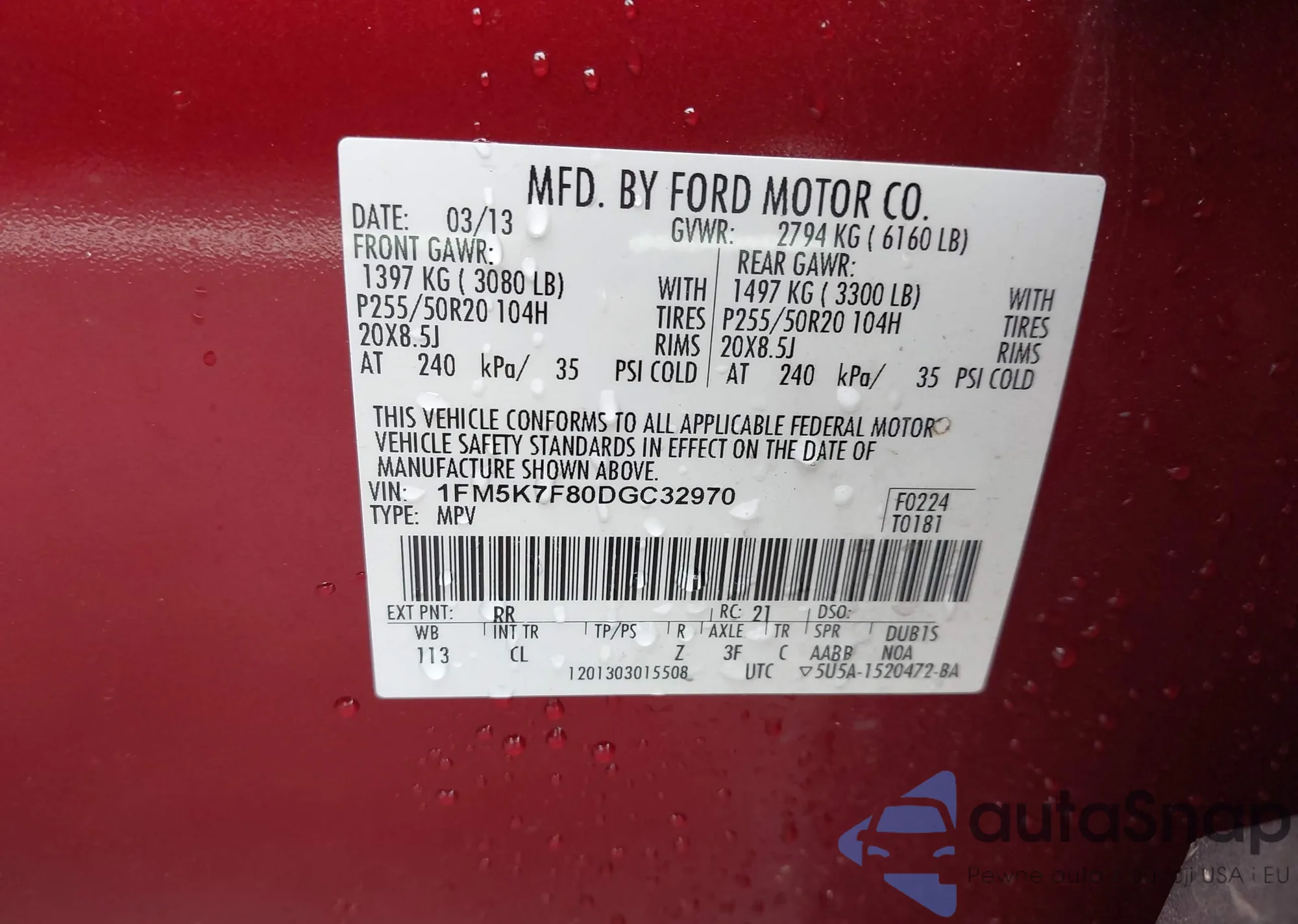 LOT: 42915166 VIN: 1FM5K7F80DGC32970