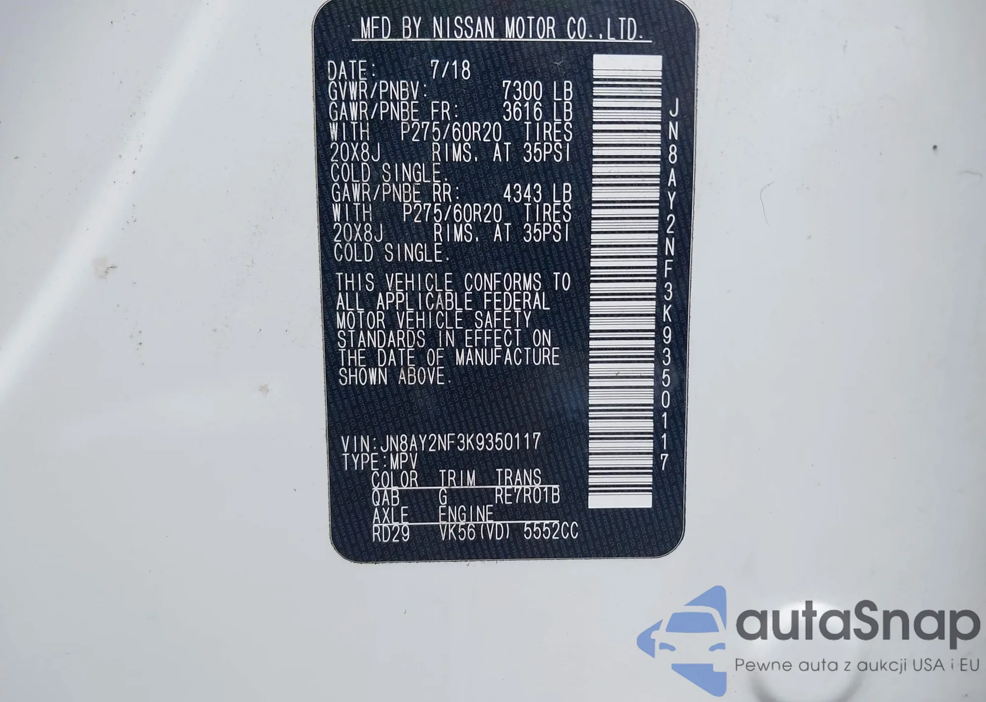 • VIN JN8AY2NF3K9350117