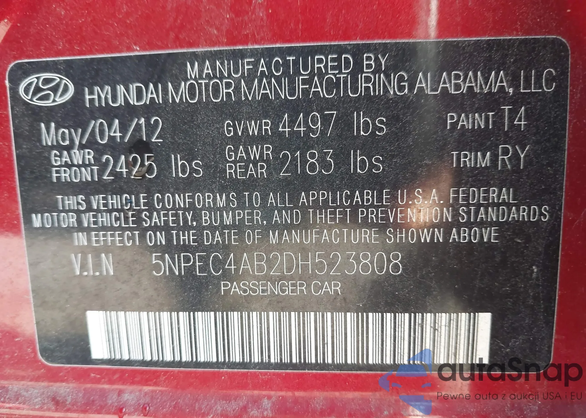 • VIN 5NPEC4AB2DH523808