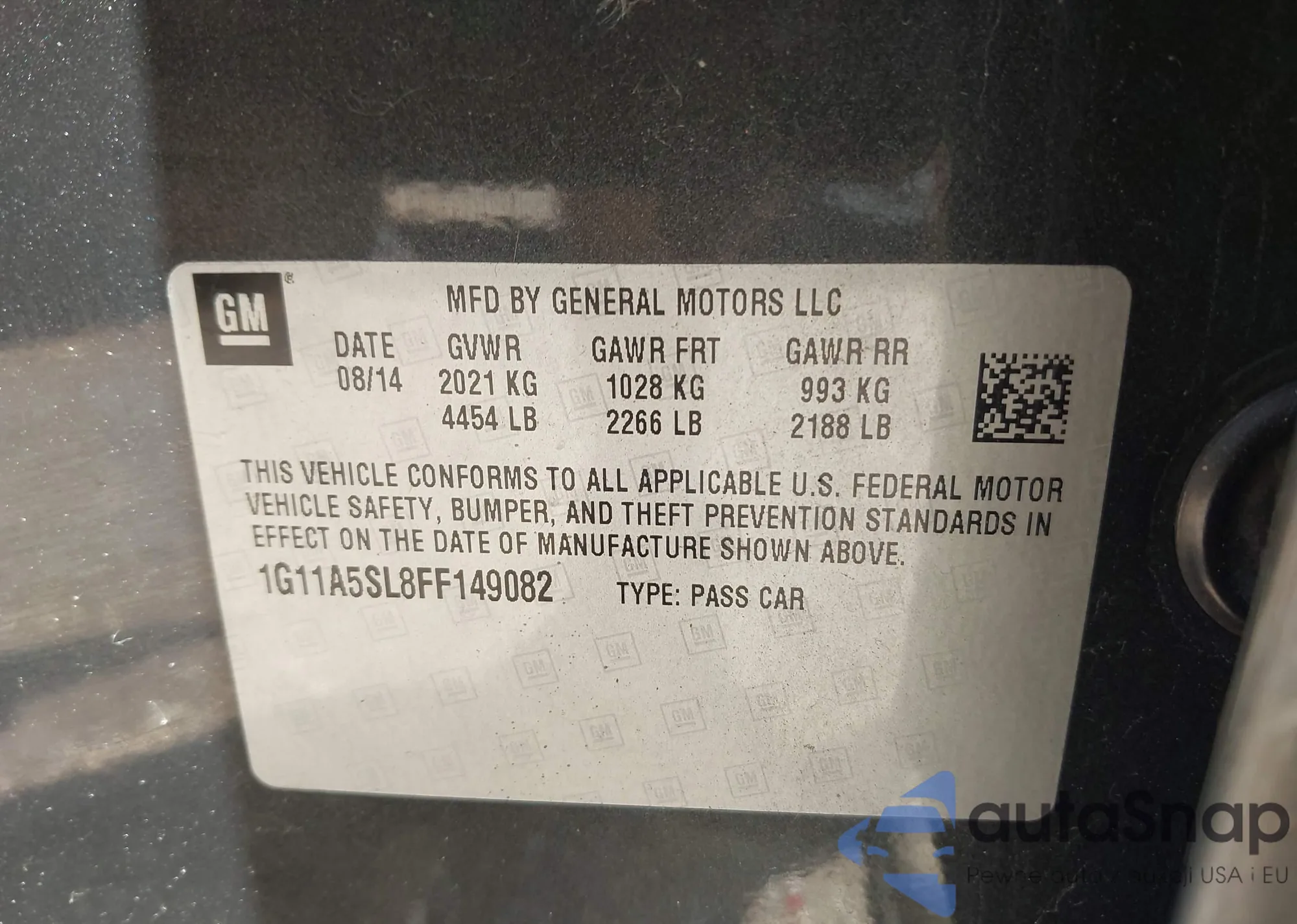 • VIN 1G11A5SL8FF149082