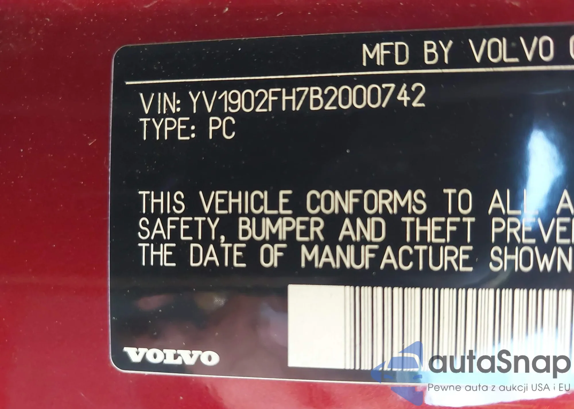 • VIN YV1902FH7B2000742