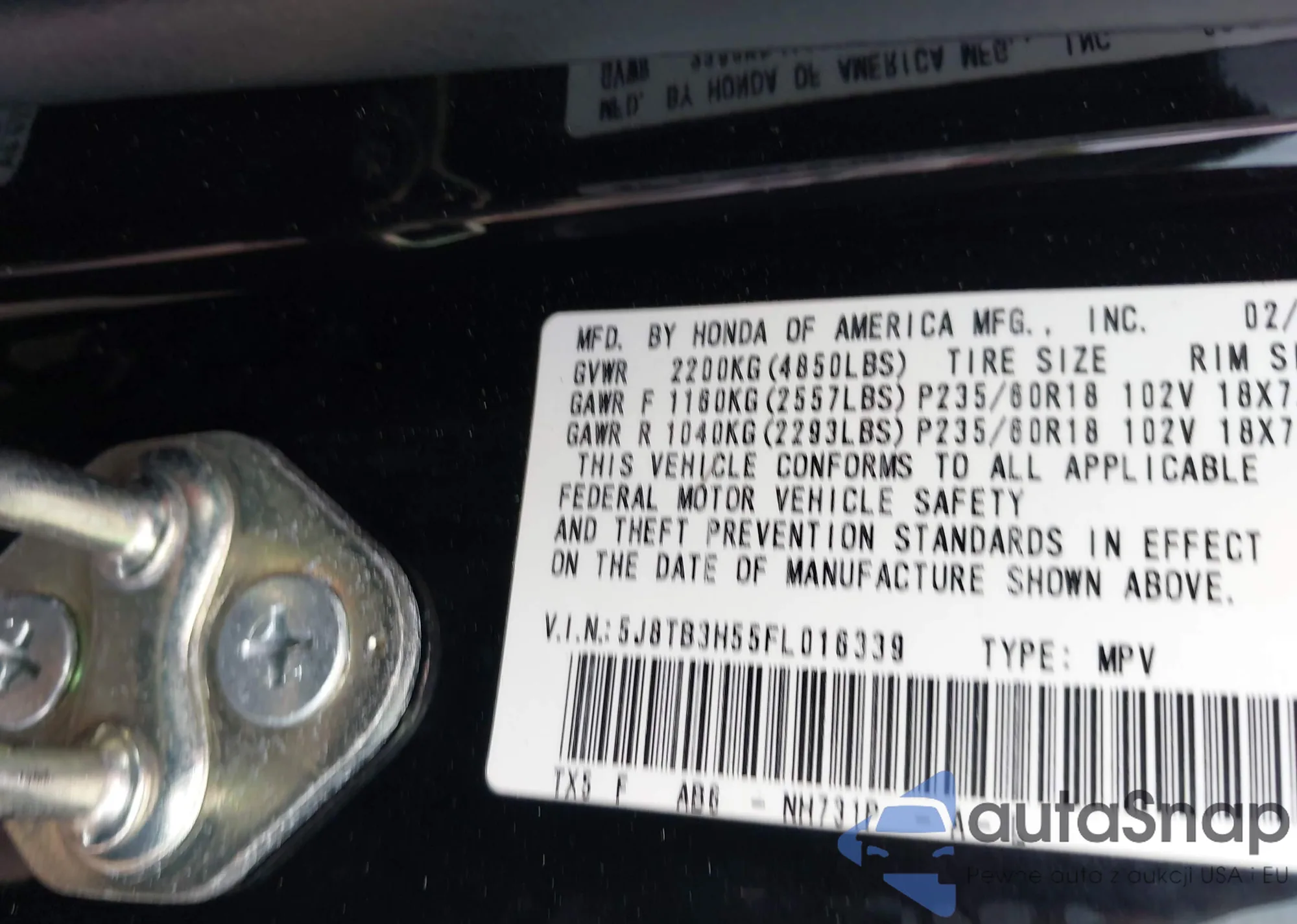 LOT: 43346257 VIN: 5J8TB3H55FL016339