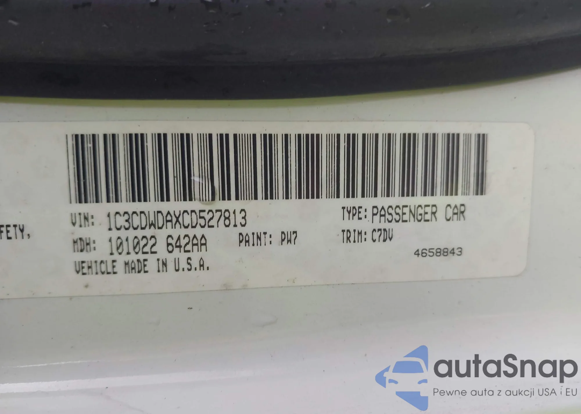 • VIN 1C3CDWDAXCD527813