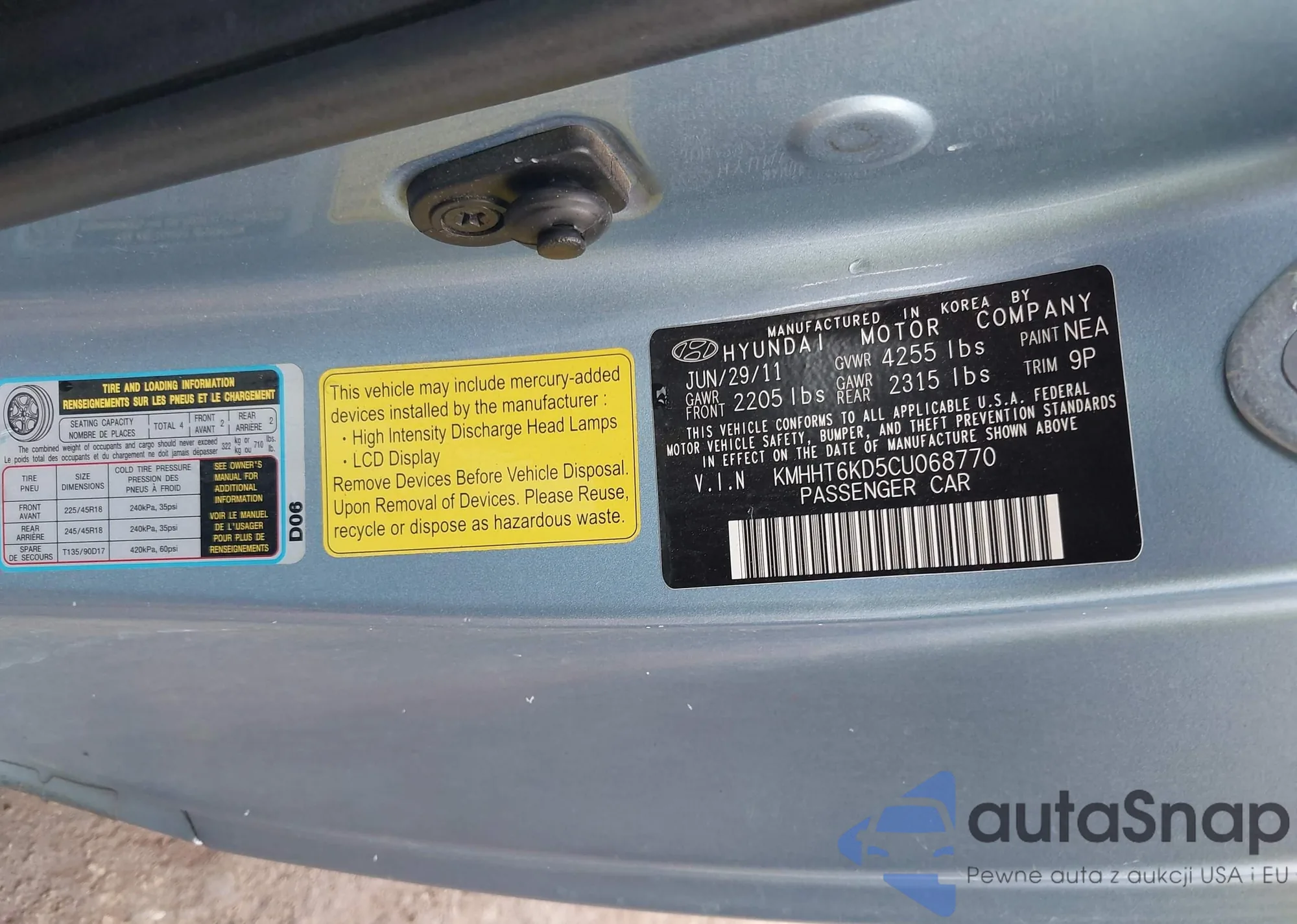 LOT: 43414843 VIN: KMHHT6KD5CU068770