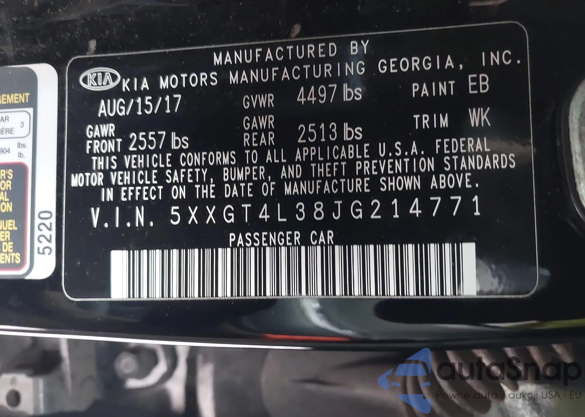 • VIN 5XXGT4L38JG214771