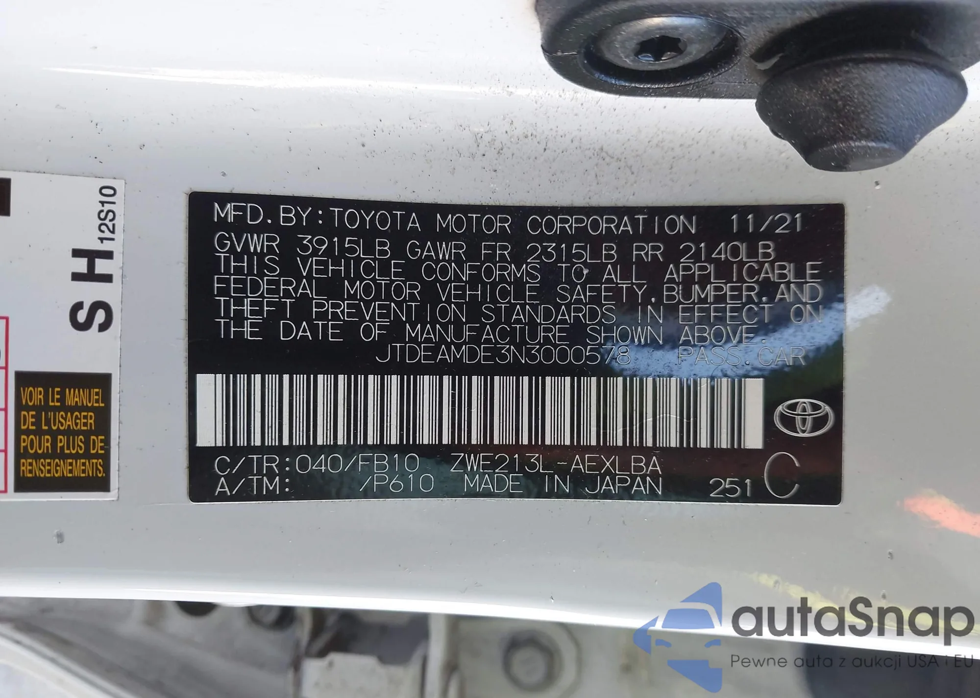 LOT: 43388131 VIN: JTDEAMDE3N3000578