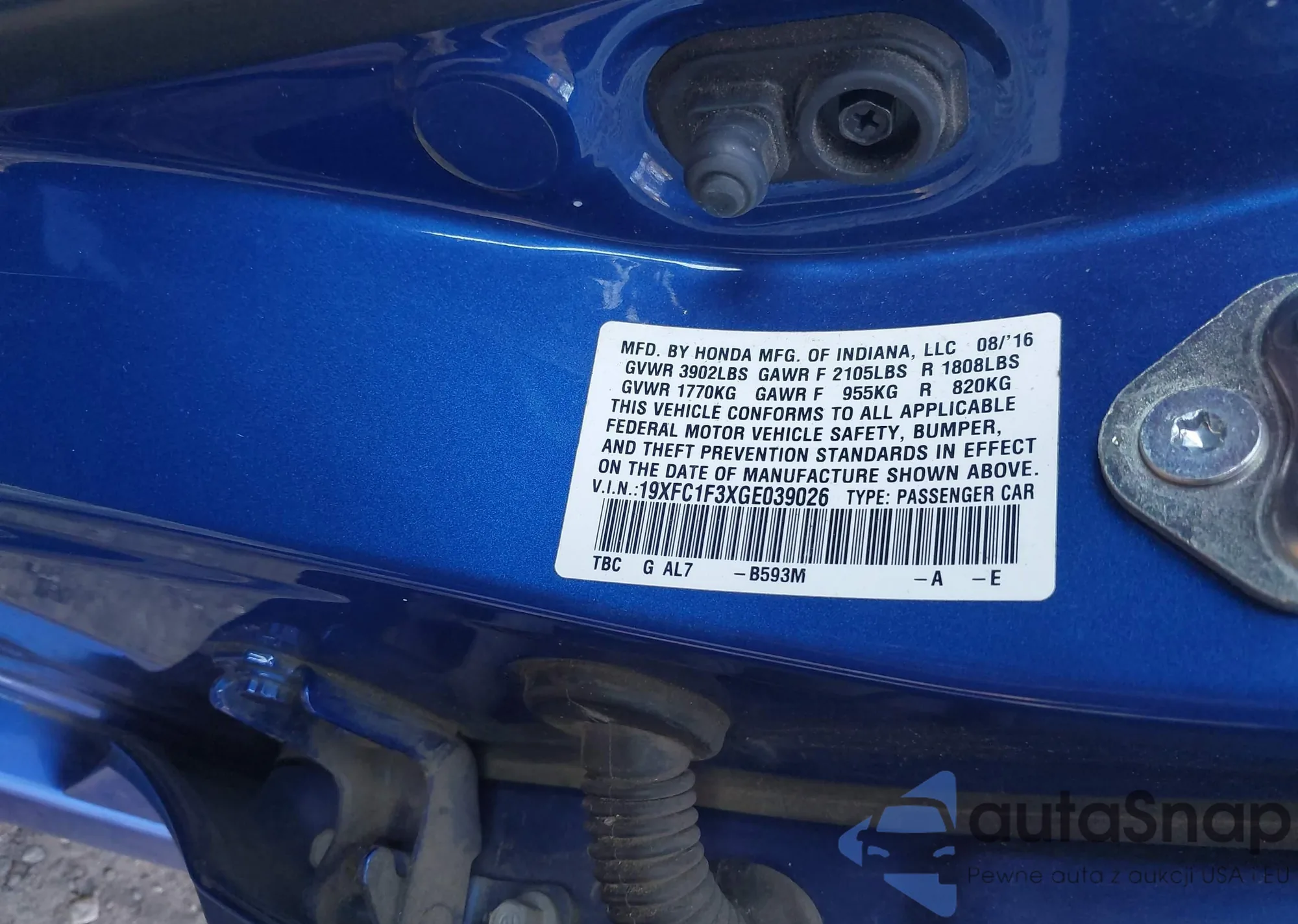LOT: 43436702 VIN: 19XFC1F3XGE039026