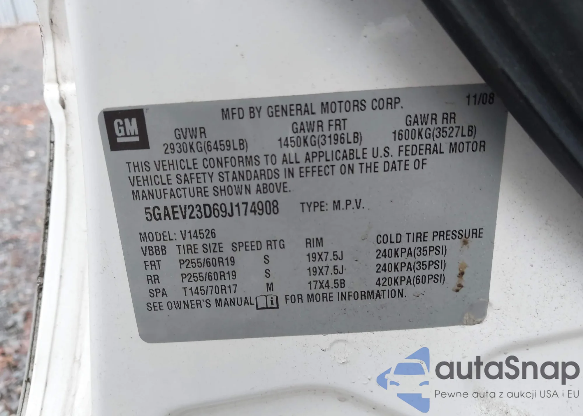 • VIN 5GAEV23D69J174908