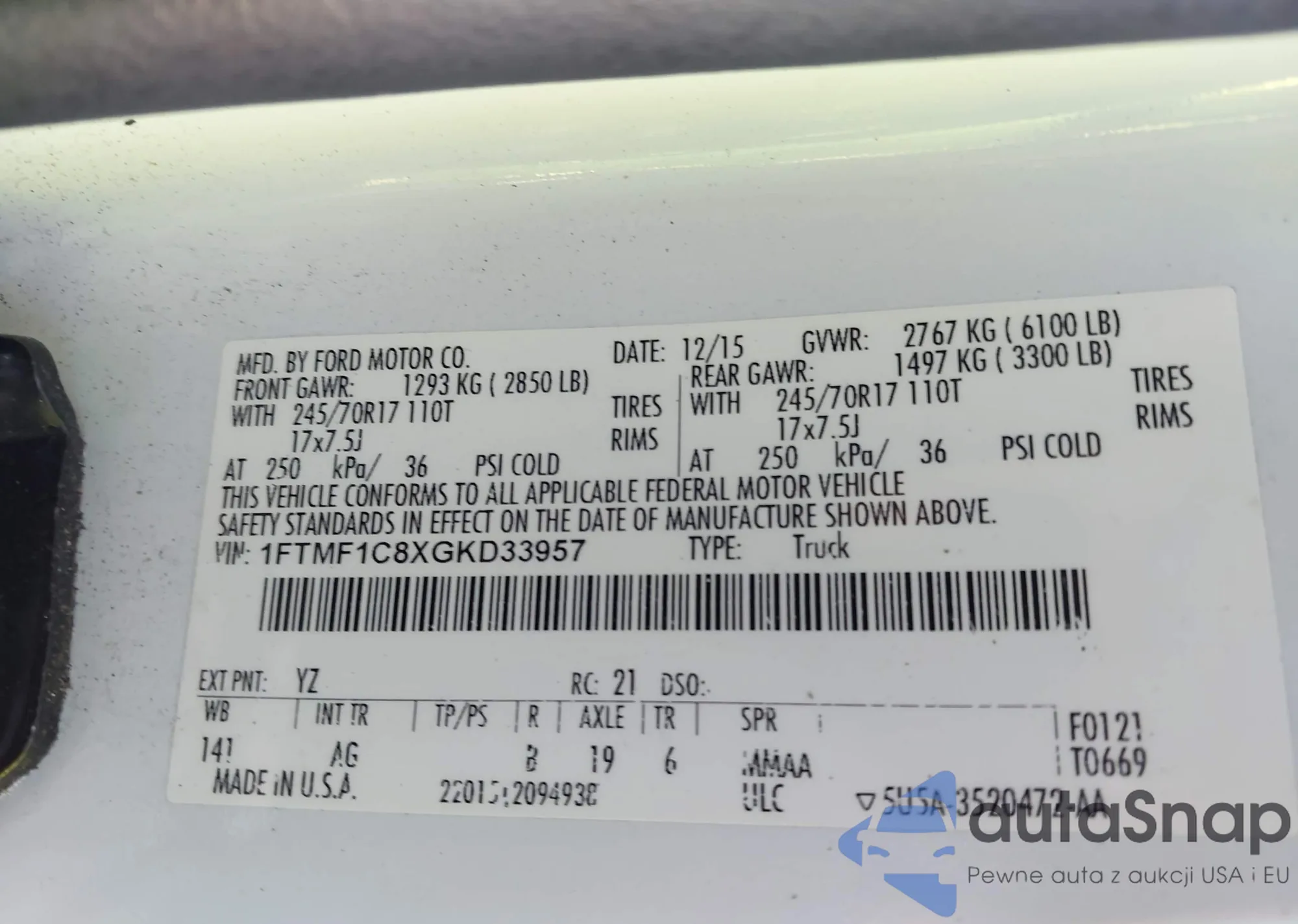 • VIN 1FTMF1C8XGKD33957