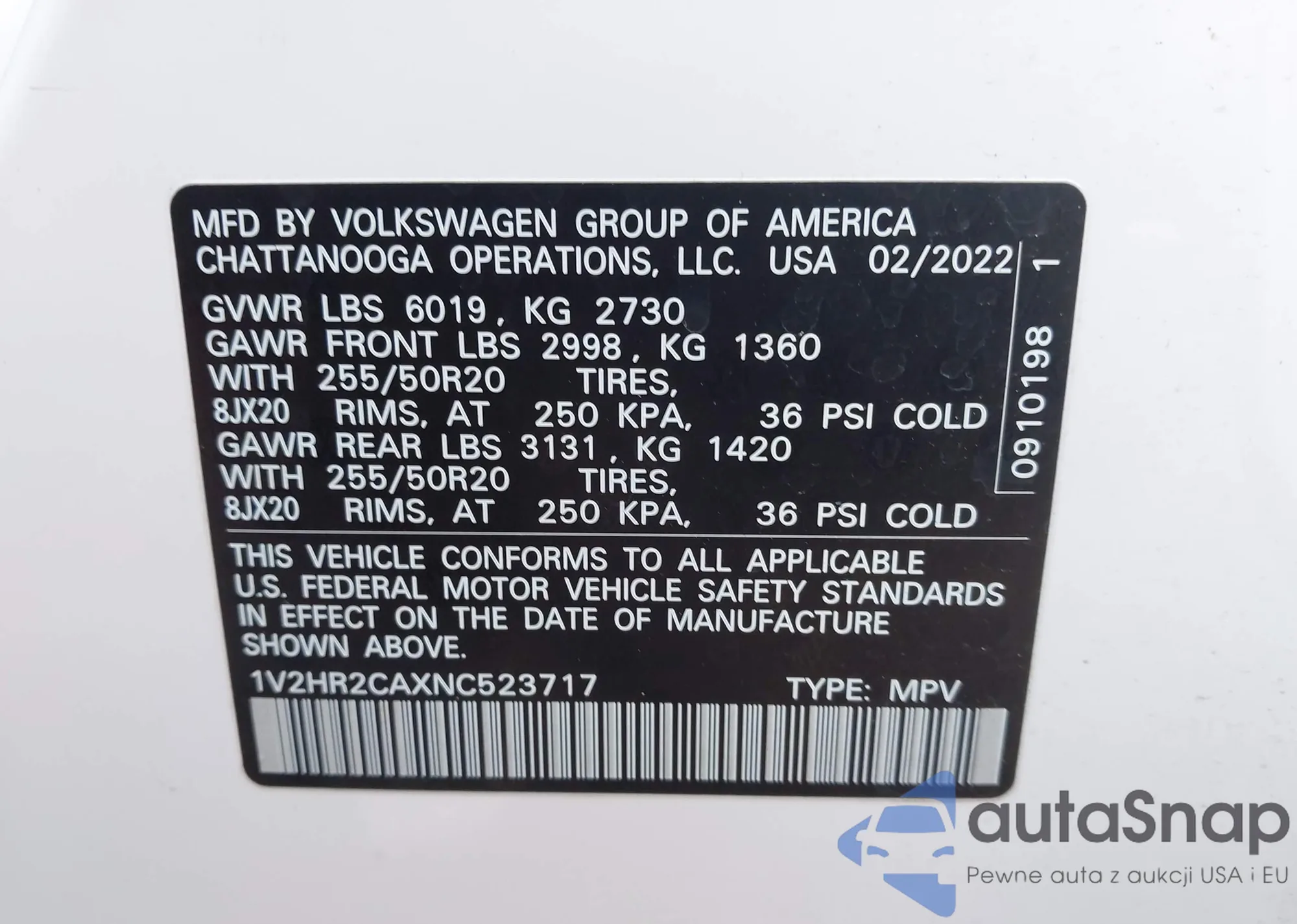 LOT: 43480886 VIN: 1V2HR2CAXNC523717