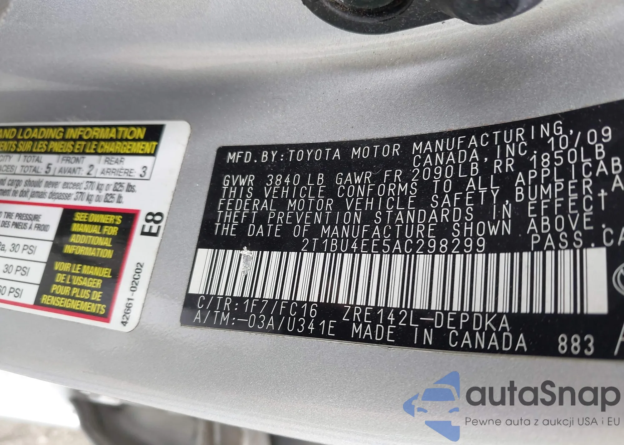 • VIN 2T1BU4EE5AC298299