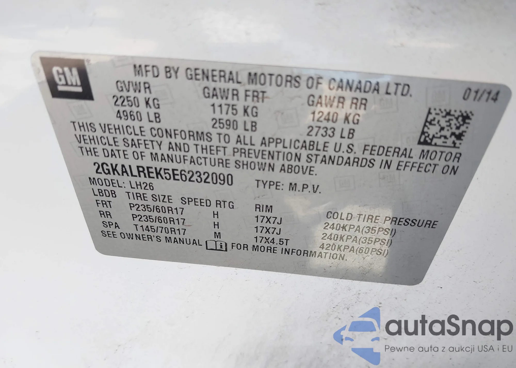 LOT: 43675212 VIN: 2C4RC1N74LR251205