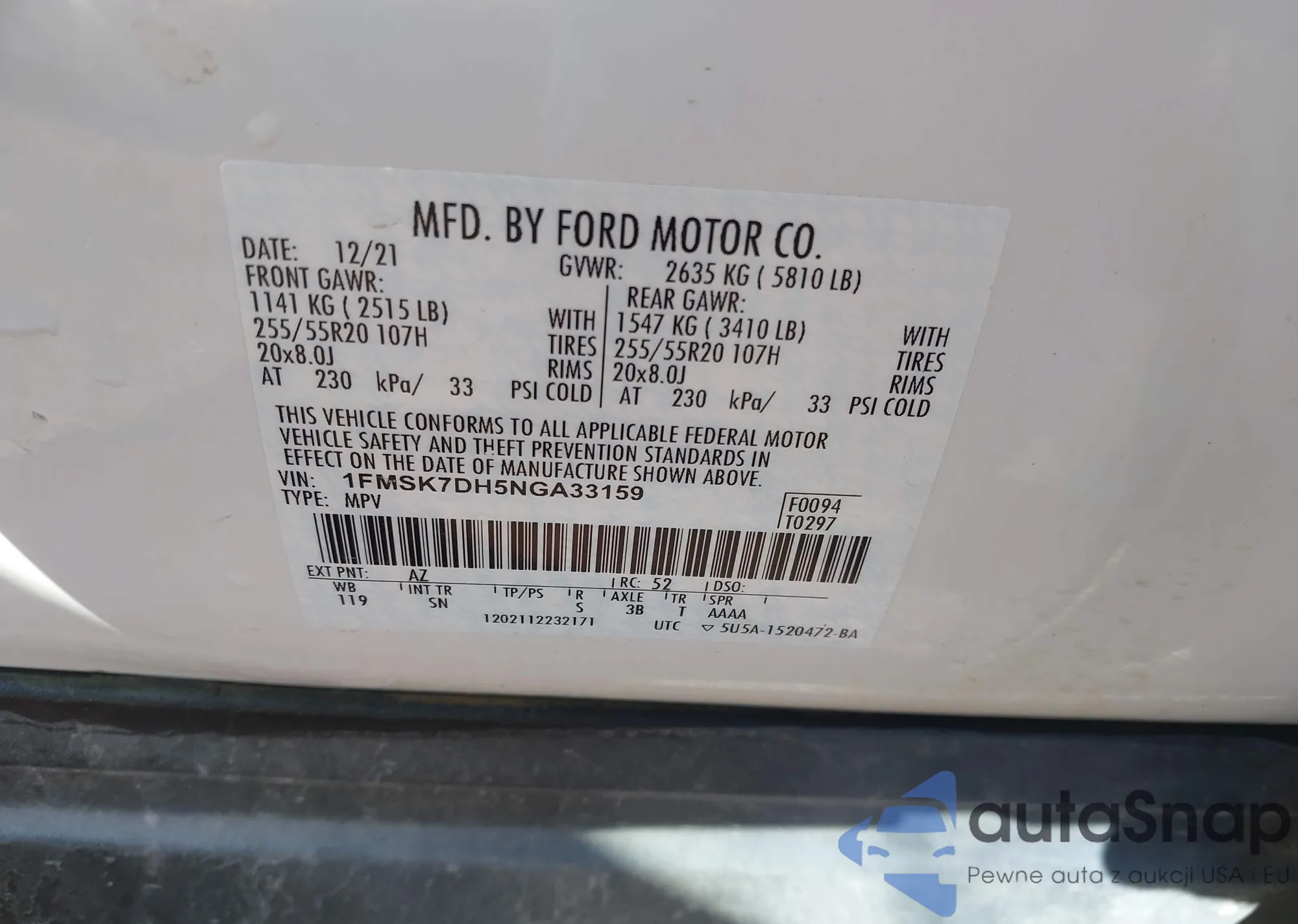 LOT: 43551179 VIN: WA1DKAFPXBA048196