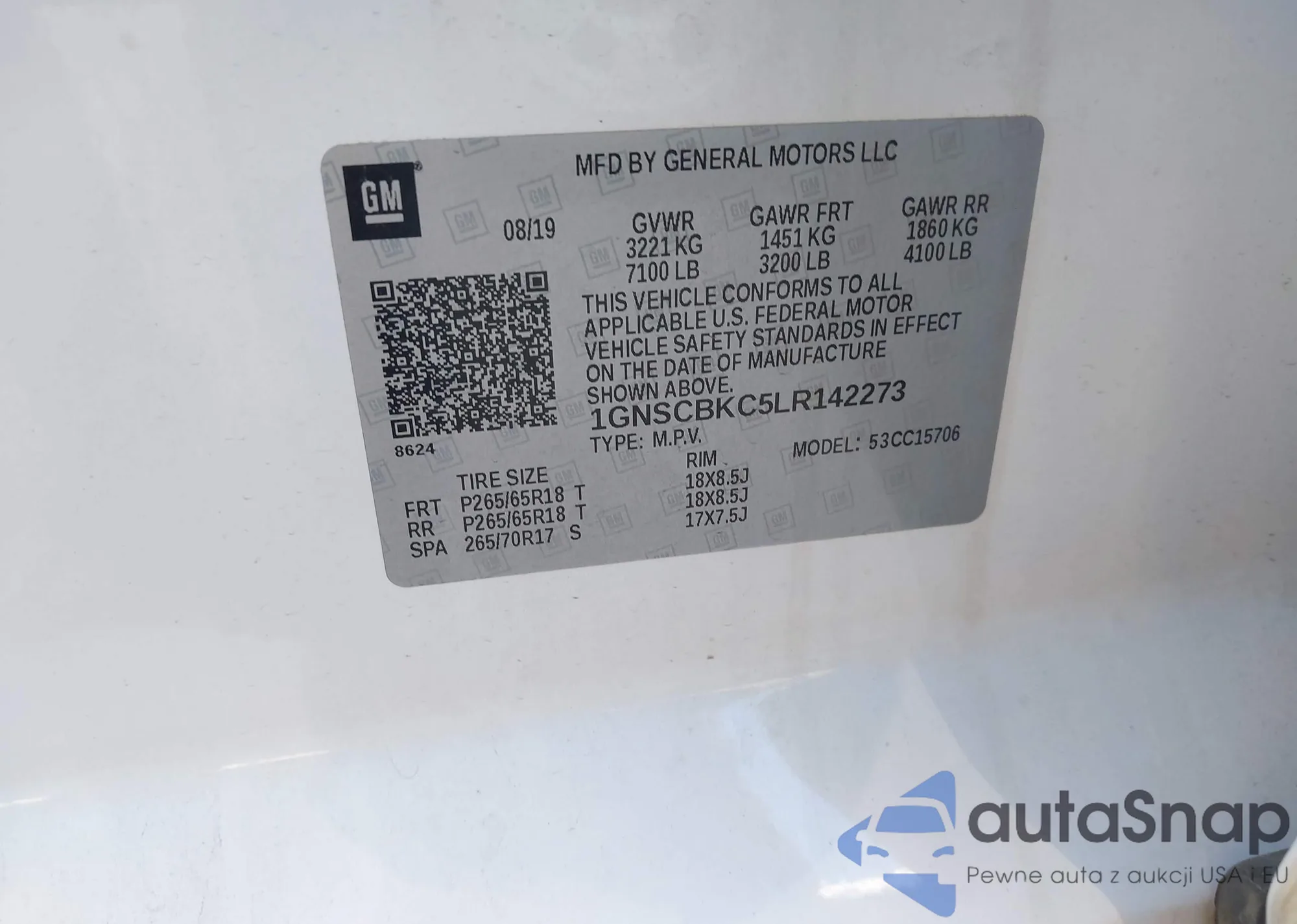 LOT: 43343933 VIN: 1GNSCBKC5LR142273