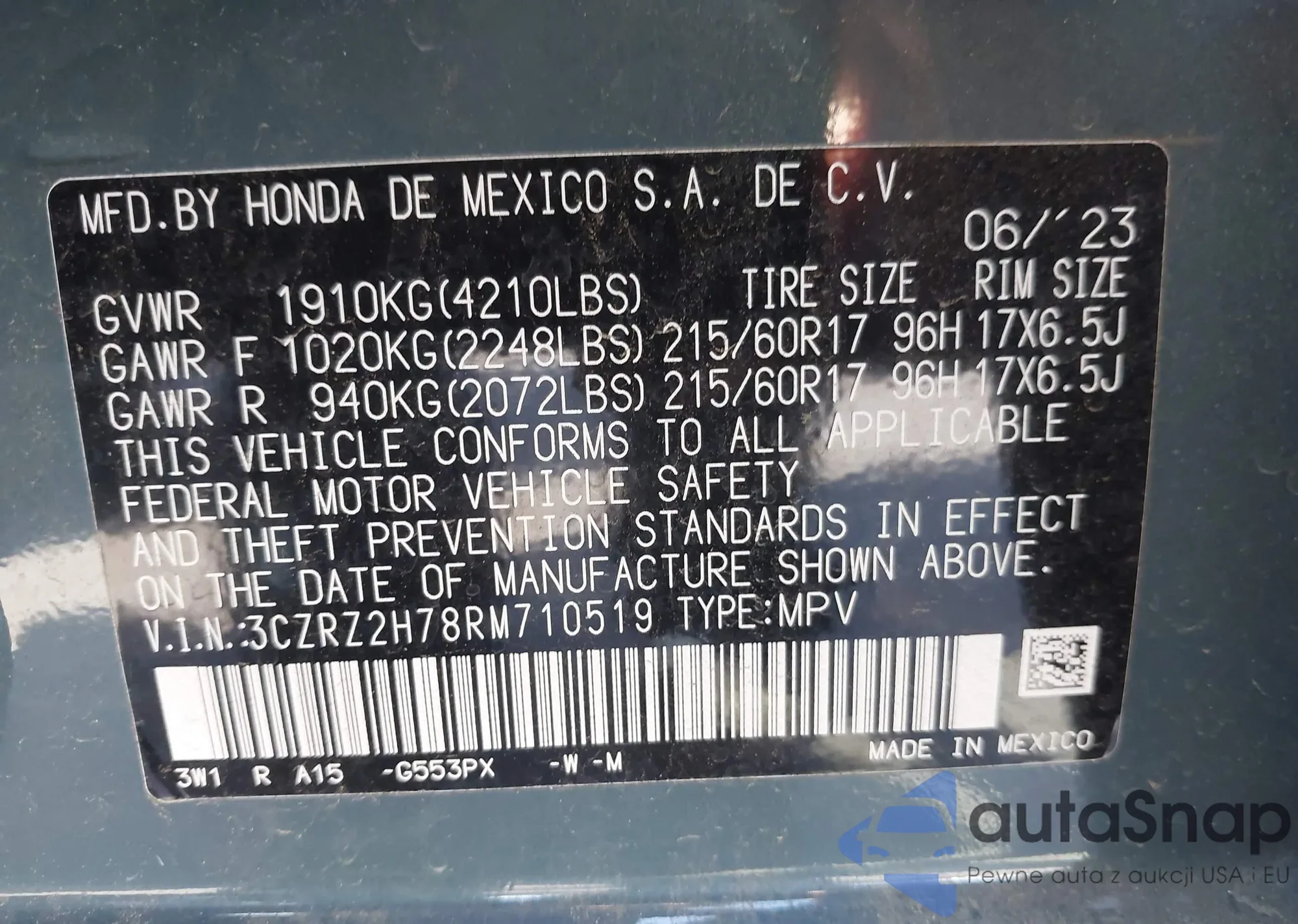• VIN 3CZRZ2H78RM710519