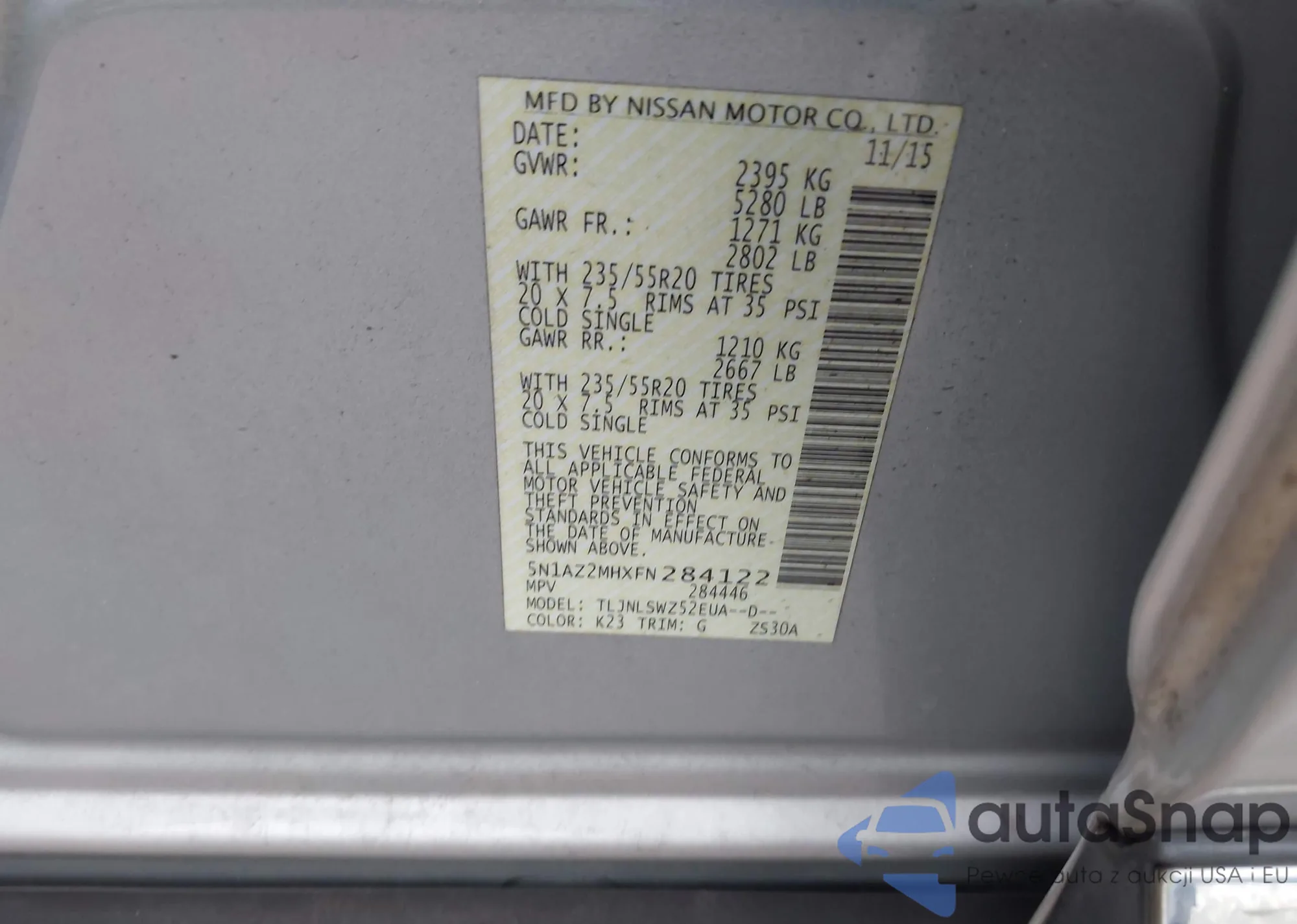LOT: 43652181 VIN: 5N1BT3BA0NC676506