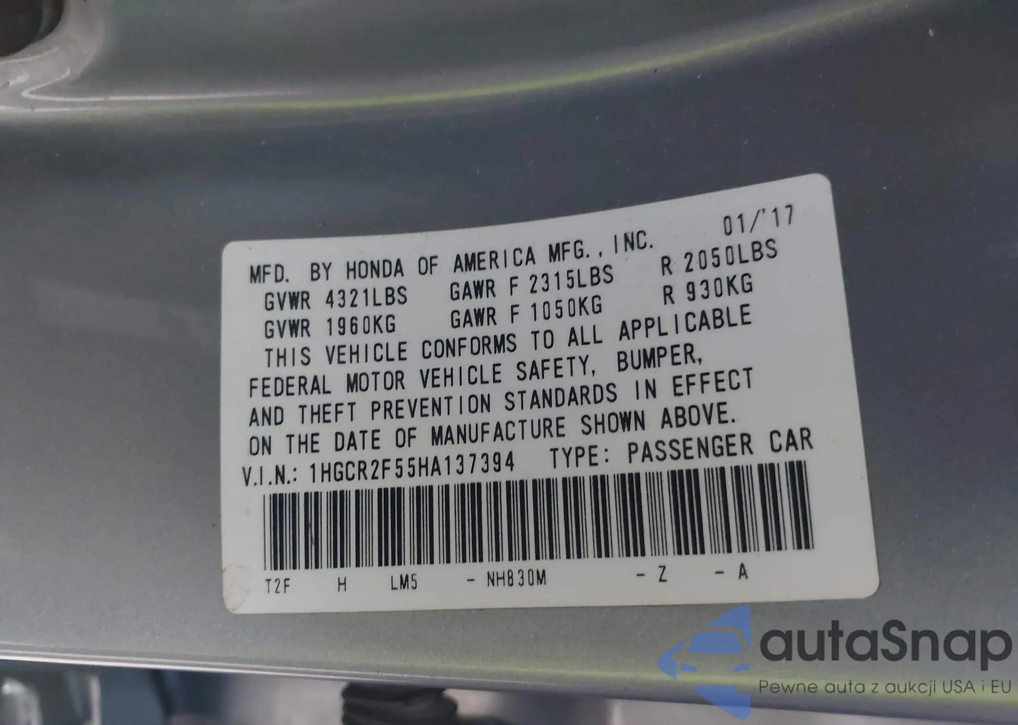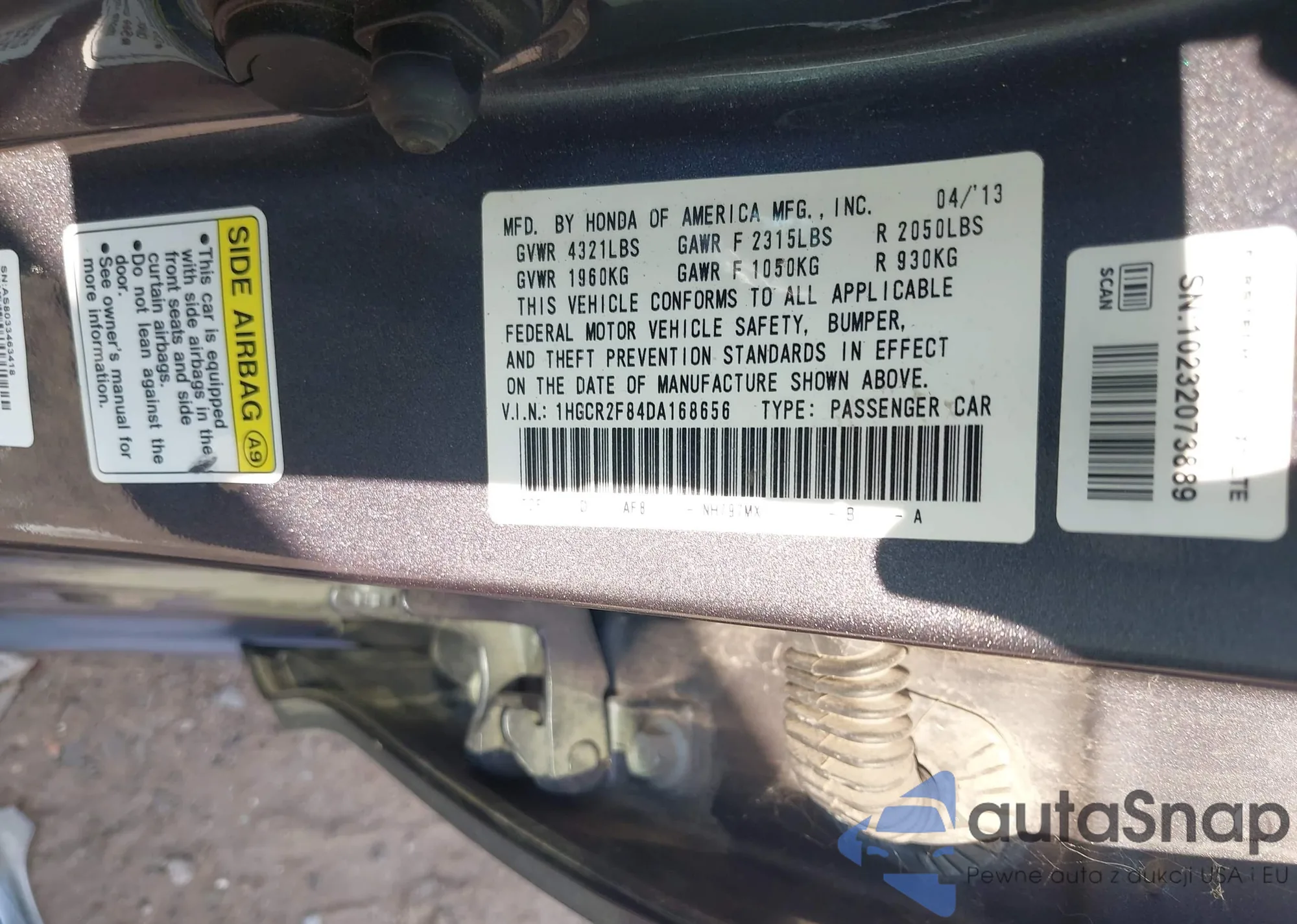 LOT: 43599973 VIN: JHMZF1D48CS004281
