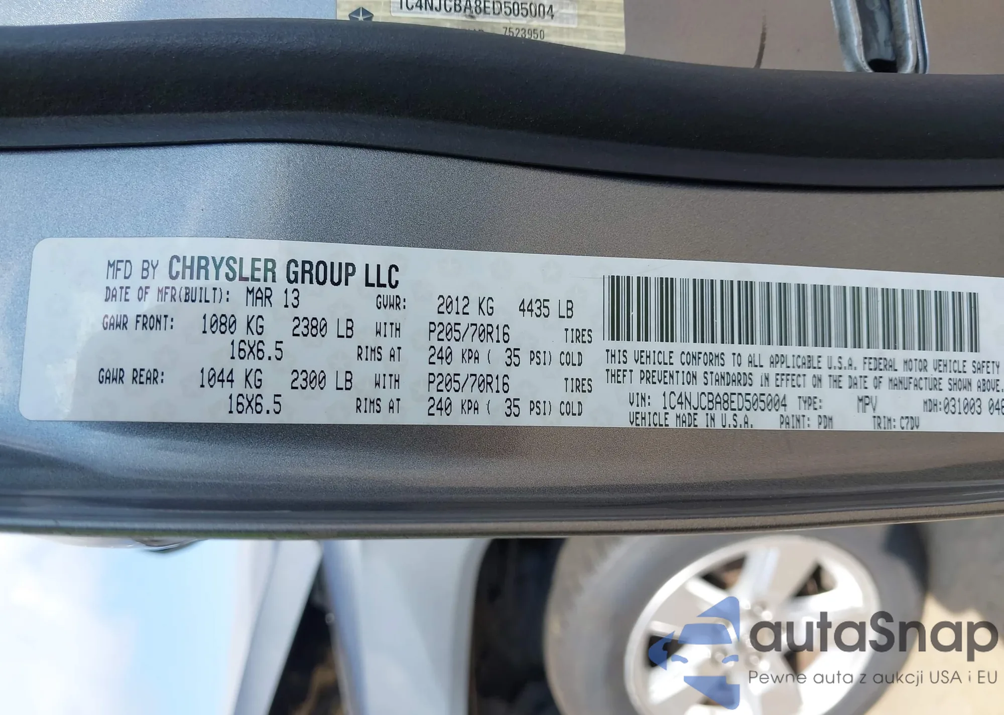 • VIN 1C4NJCBA8ED505004