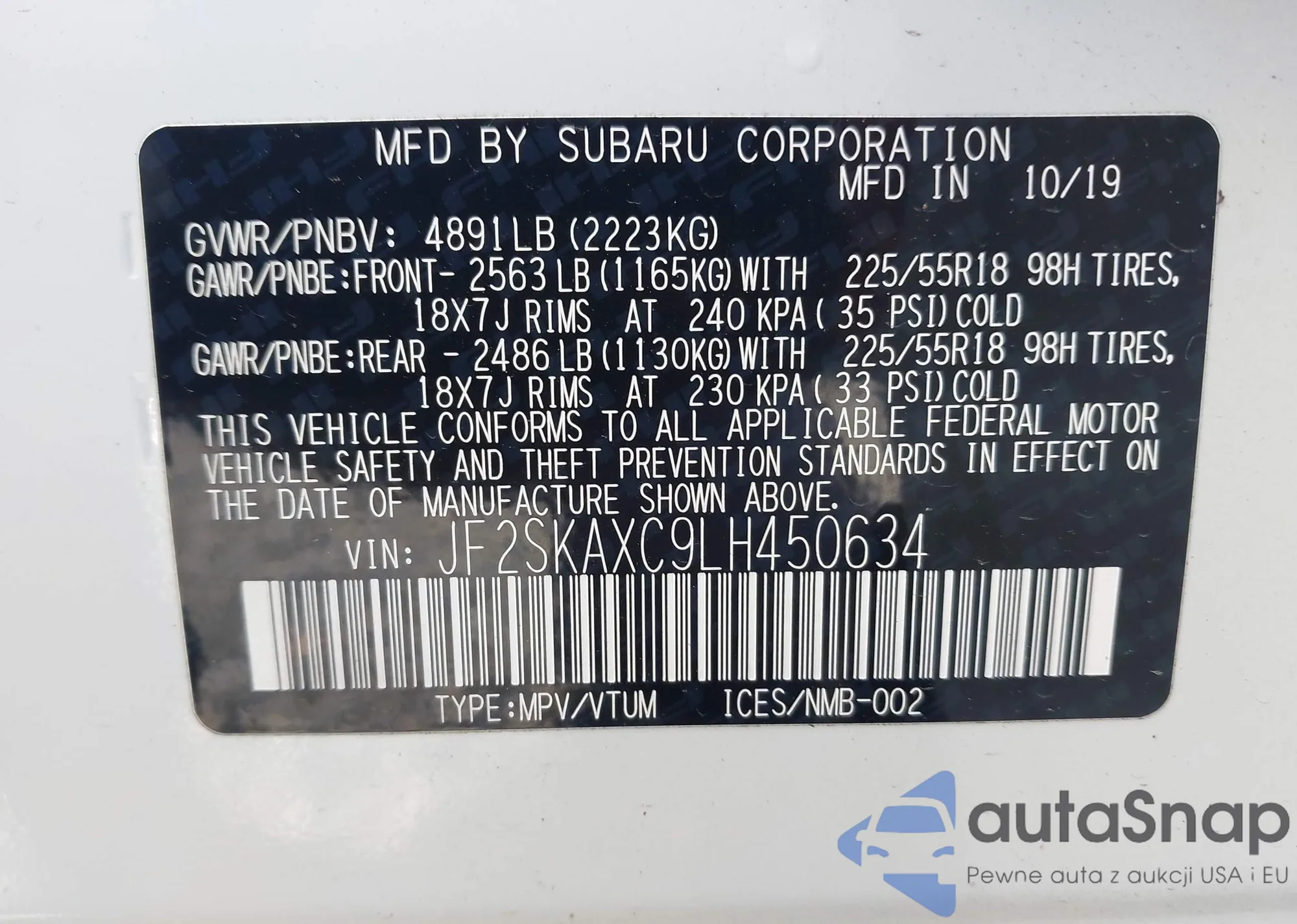 • VIN JF2SKAXC9LH450634