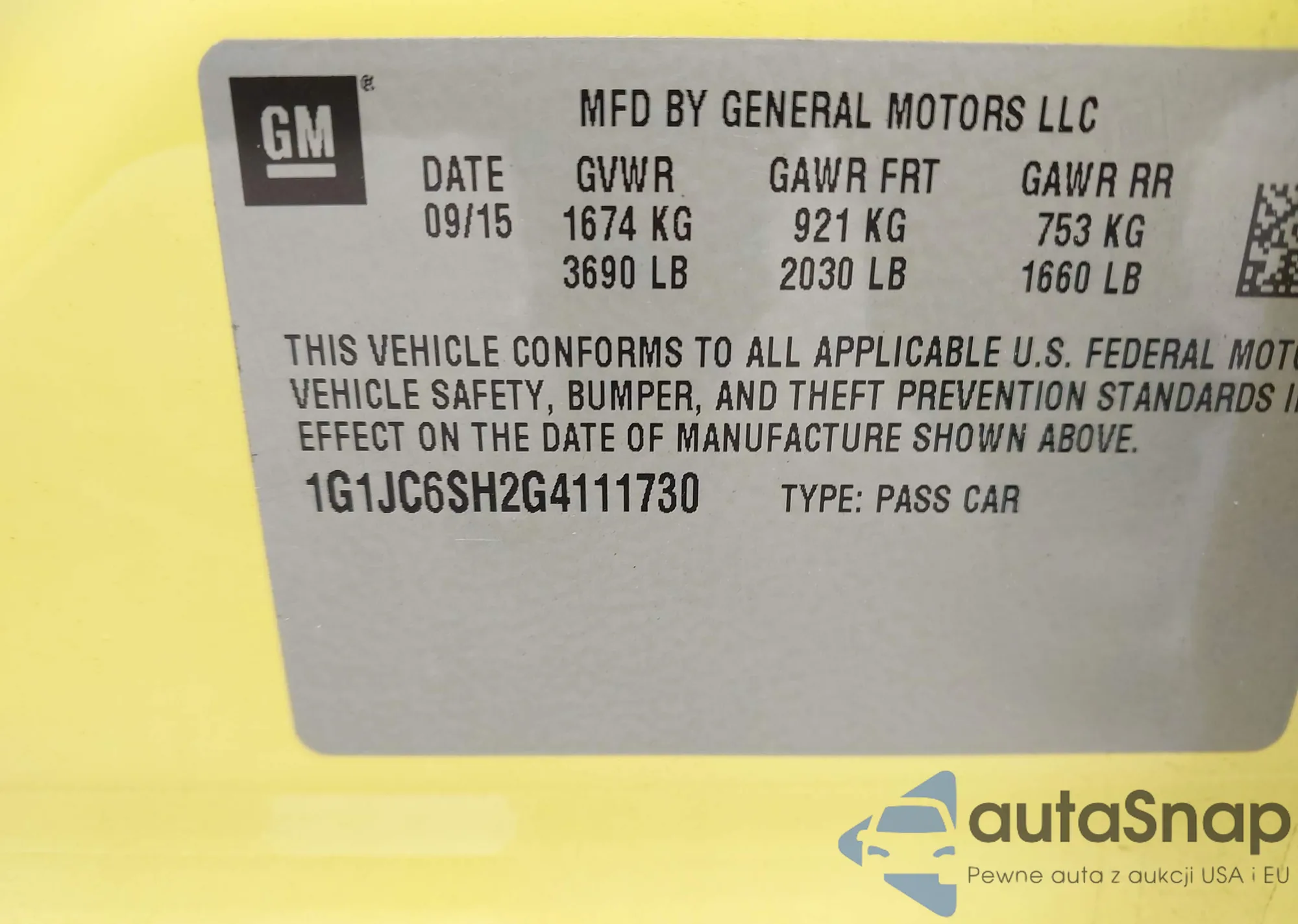 LOT: 43555366 VIN: 1G11C5SL7FF304988