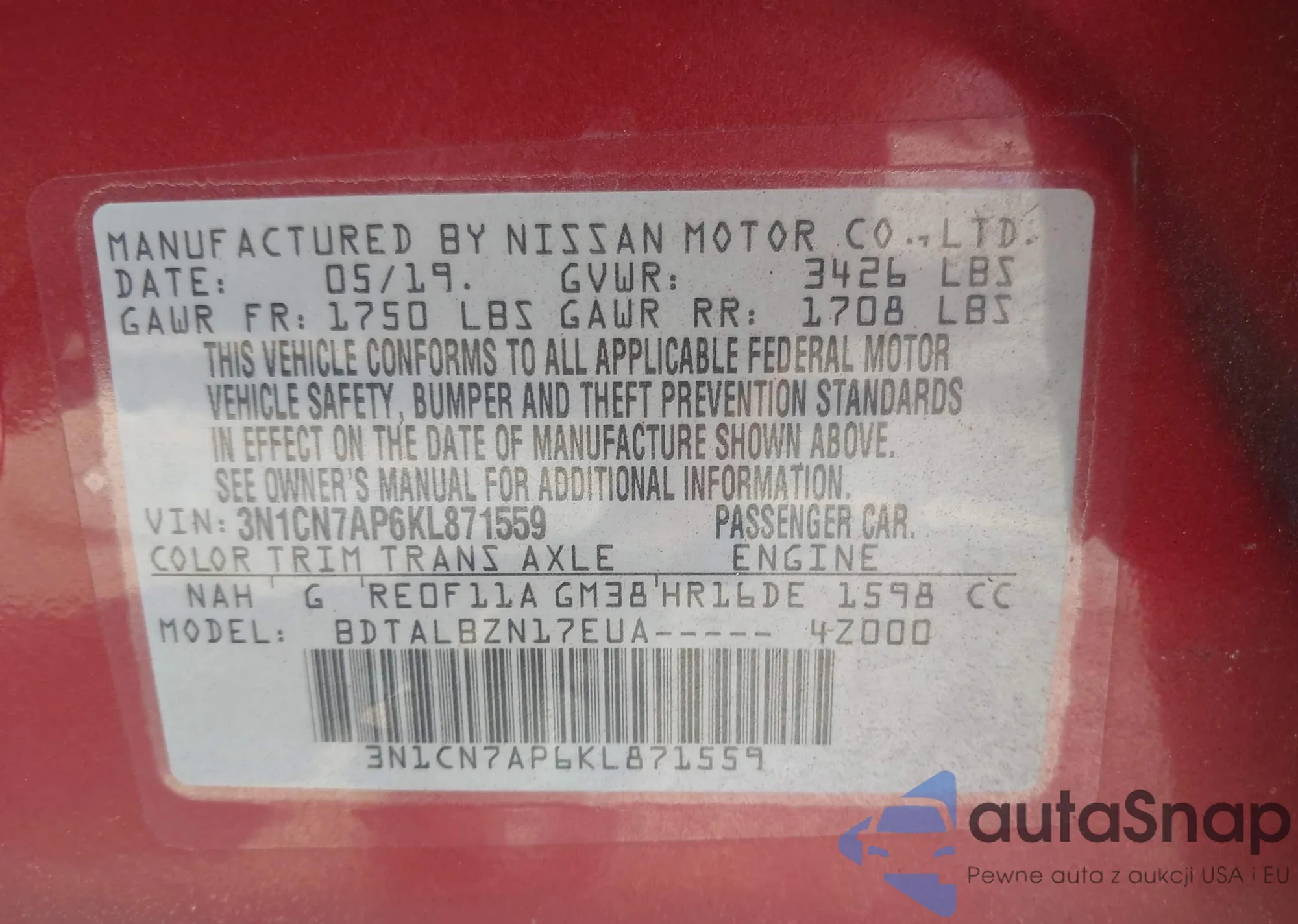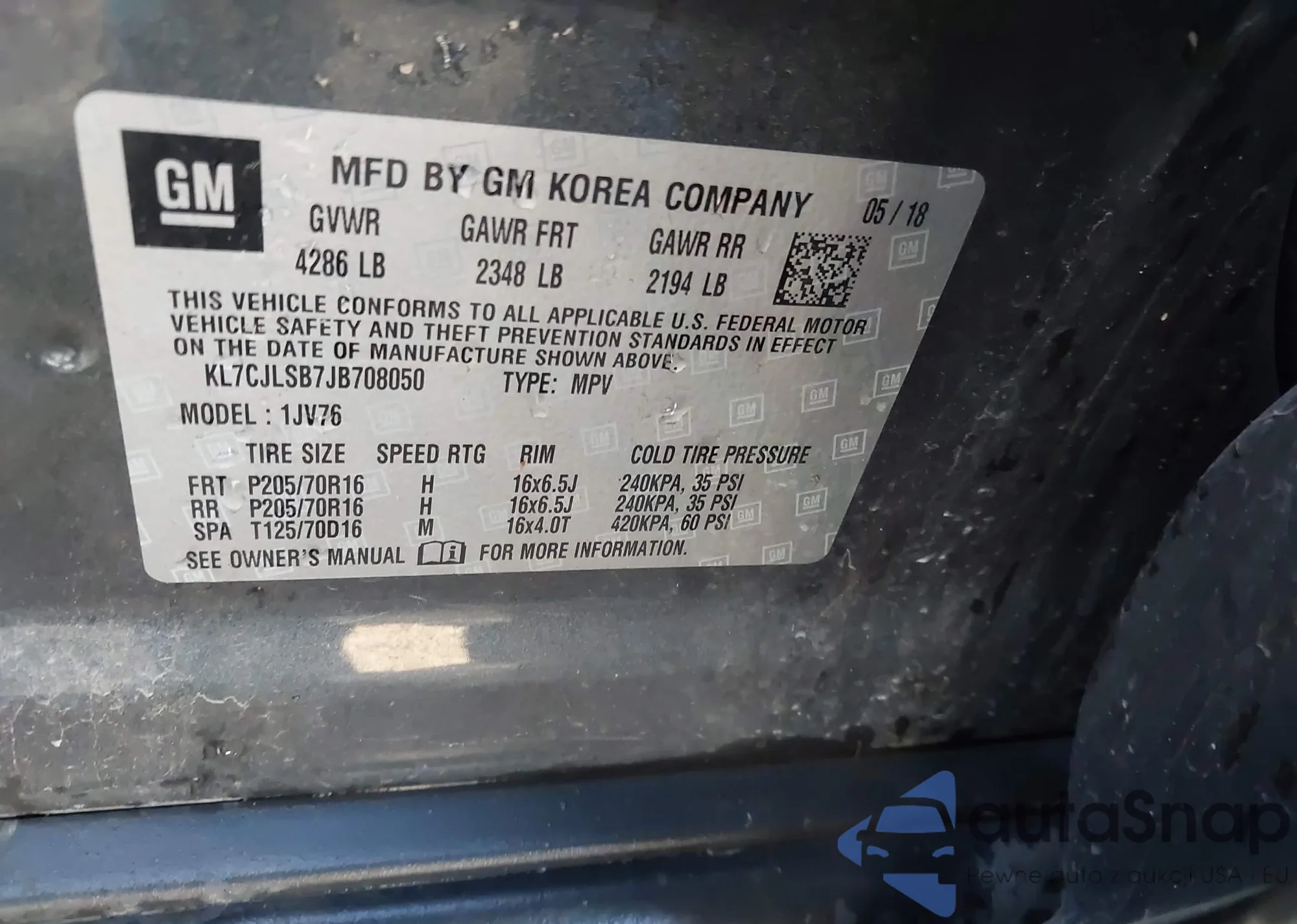• VIN KL79MVSL2NB105471