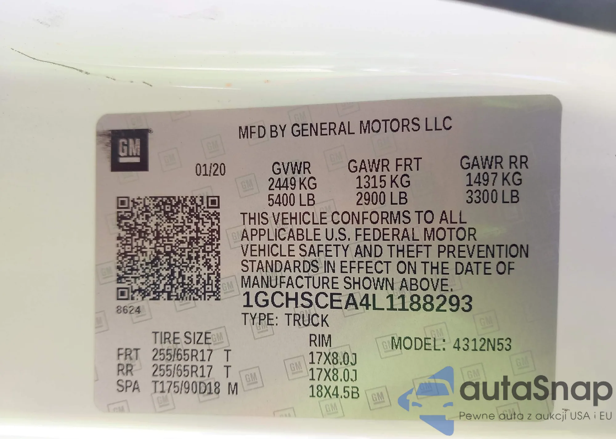 LOT: 43255523 VIN: 1GCHSCEA4L1188293