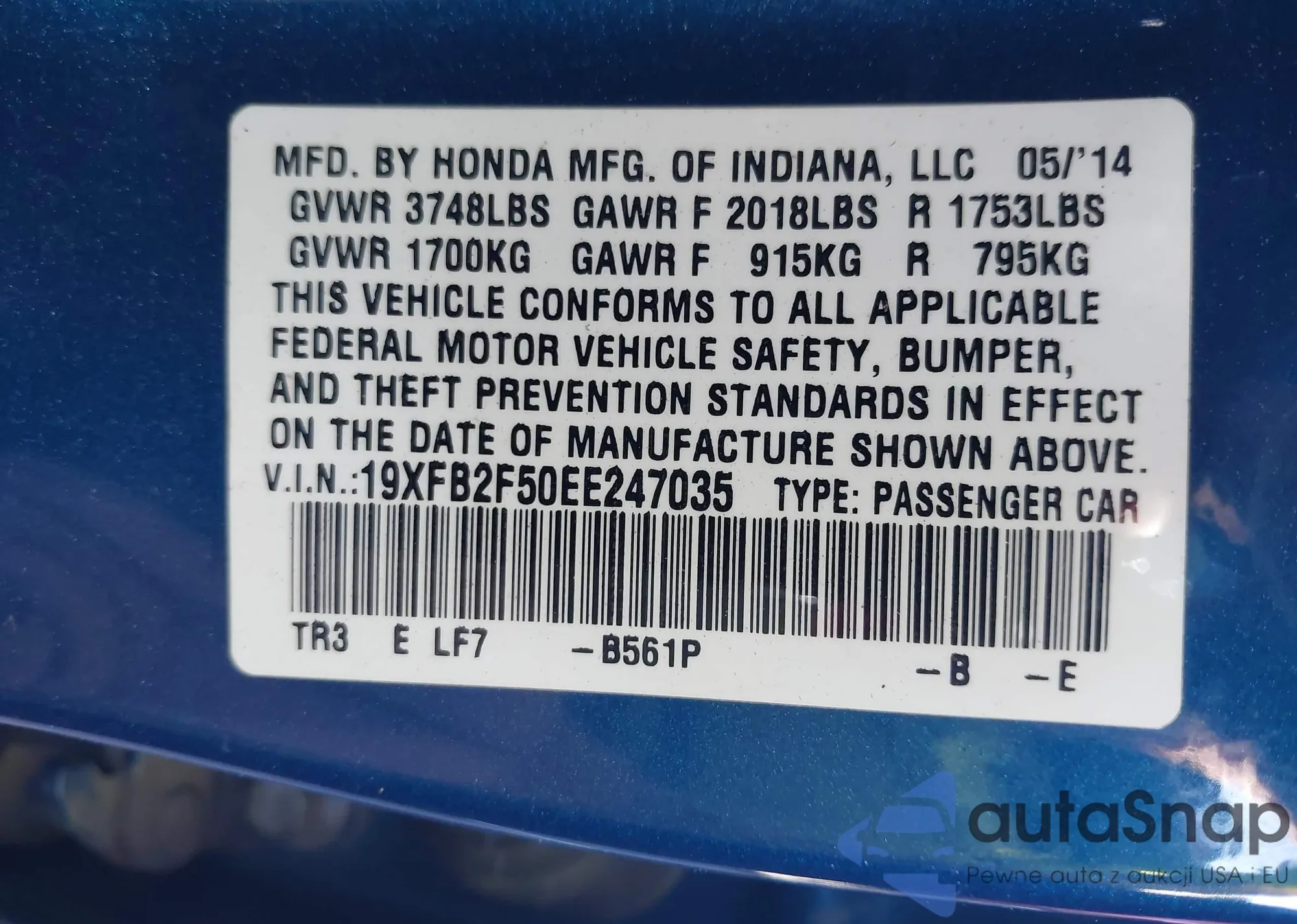 • VIN 19XFB2F50EE247035