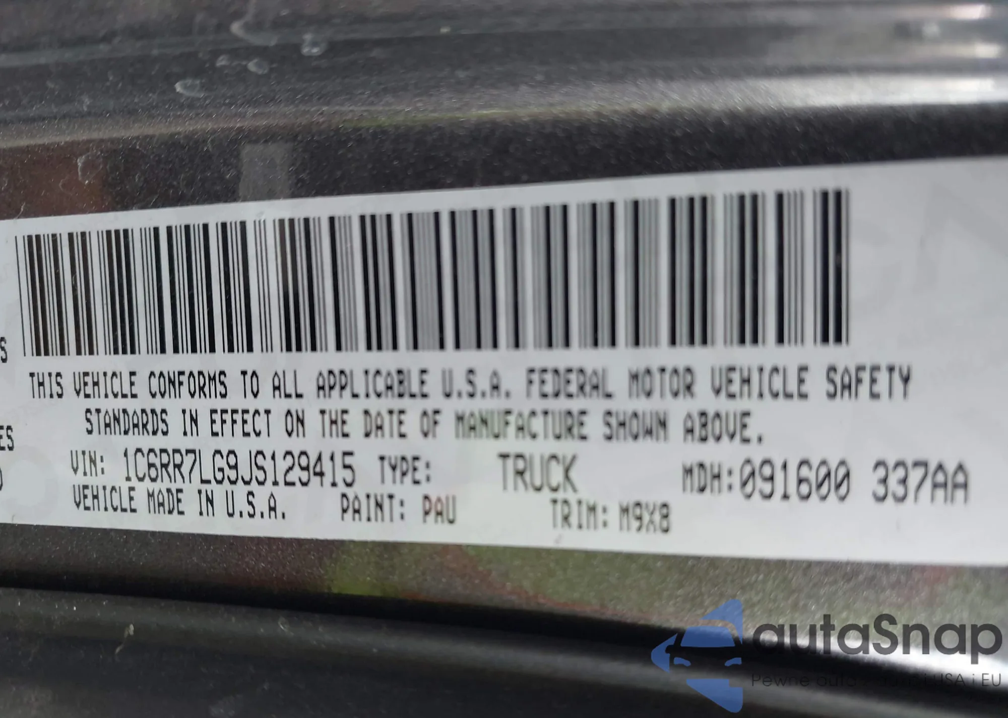 • VIN 1C6RR7LG9JS129415