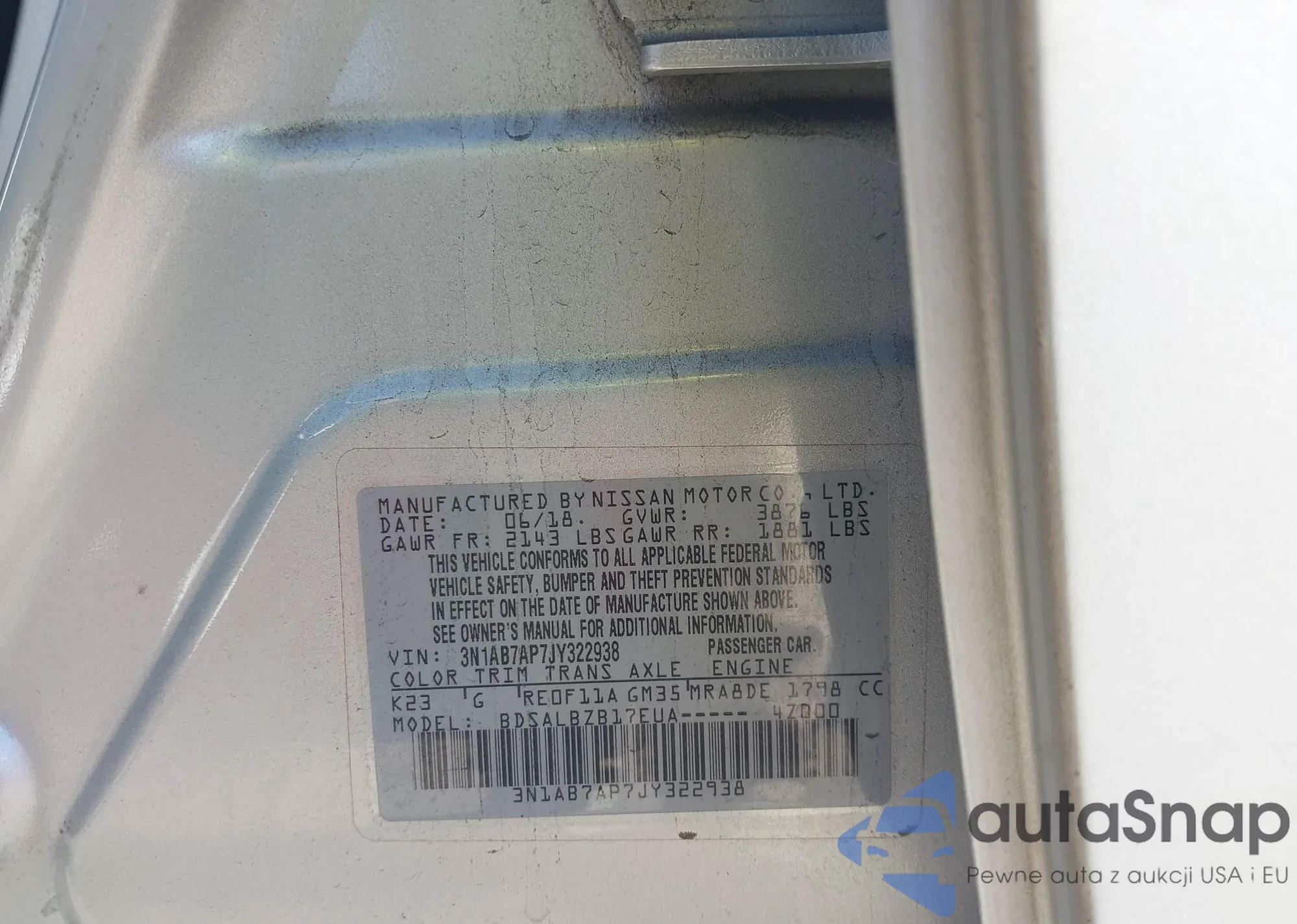 • VIN 3N1AB7AP7JY322938